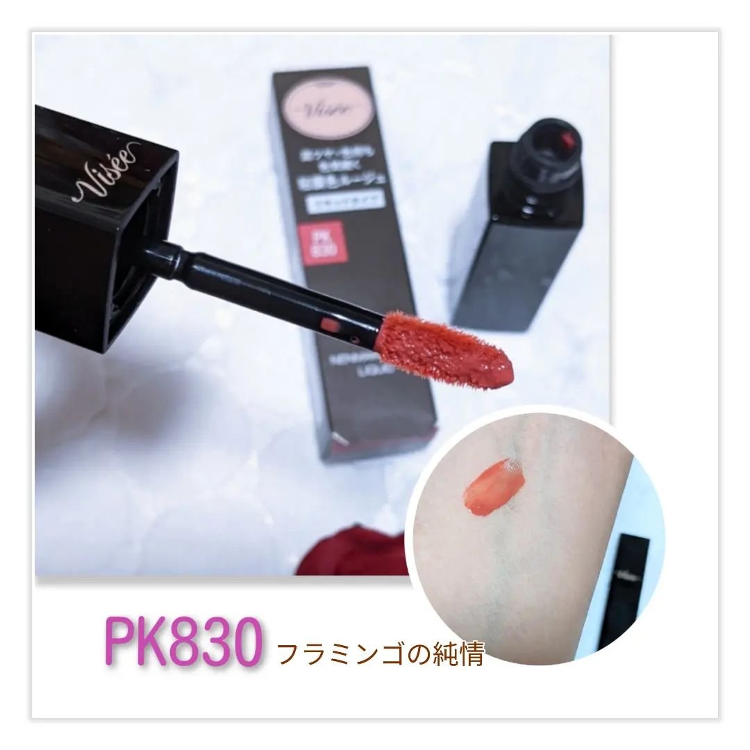 みずみずしいのに、ぷっくりボリューミィな唇に仕上がるリキッドルージュです。透明感と粘膜感のあるツヤやかな仕上がりがつづきます。 ラスティングティント処方採用。染料で唇をじんわりと染めあげるため、つけたての美しい発色が長時間持続します。 コーラルピンクカラーのPK830フラミンゴの純情。リキッドタイプはチップなのでくちびるの細かいところまで塗れるのがよい。