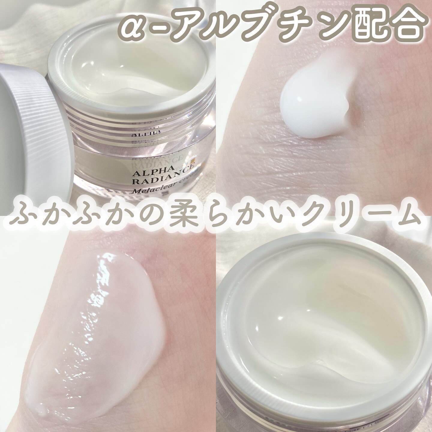 - アルファラディアンスメラクリア クリーム シミやくすみを取る14日の秘密のキー #シミくすみクリーム ✔しっとりと楽に保湿しながら肌を落ち着かせる効果まで! ✔1年中使いやすいさらっと柔らかな使い心地✔臨床テスト完了! -使用2週間後、顔全体7部位(おでこ、左右の目尻、左右のほうれい線、左右の口元)全体の26%以上のシミ緩和* -使用2週間後、5年以上経ったシミ 21.4%Down* -1回の使用で肌の保湿 64.5%UP* -使用2週間後、肌の輝き 0.68%UP* -使用2週間後、肌のクリア度(明るさ) 0.98%UP* -使用2週間後、肌トーン 0.92%UP* *研究機関:P&K皮膚臨床研究センター(株) / 試験期間:2024.06.03~2024.06.18 / 試験対象:被験者21名