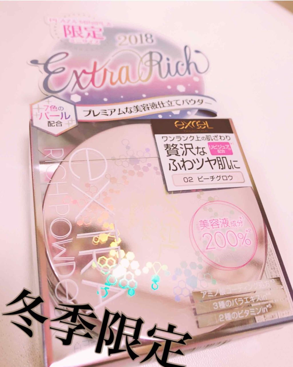 2015年から大人気のexcel冬季限定パウダー エクストラリッチパウダーが10周年記念パッケージで今年も発売されました! アミノ酸コーティング処方 お肌にしっとりと密着し、極上のうるふわ肌に。 乾燥しがちな私の肌もしっとりふんわり仕上がりました✨ パフのフカフカが気持ちよくてとっても使いやすかったですෆ