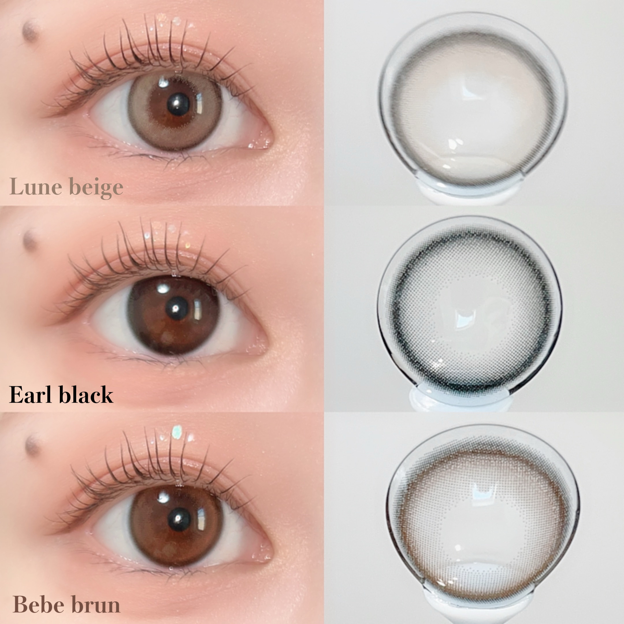 光沢ベージュでちゅるん感が可愛いカラコン𓂃 細フチで発色良くて存在感がある瞳になるよ🤍 うるうる感が可愛い黒コン🎶 真っ黒すぎない透け感が丁度いいの。ワンホンメイクにもおすすめ! 万能ブラウンで自然に盛れるカラー🤎 ナチュラルなカラーだからどんなメイクにも合わせやすいよˎˊ˗