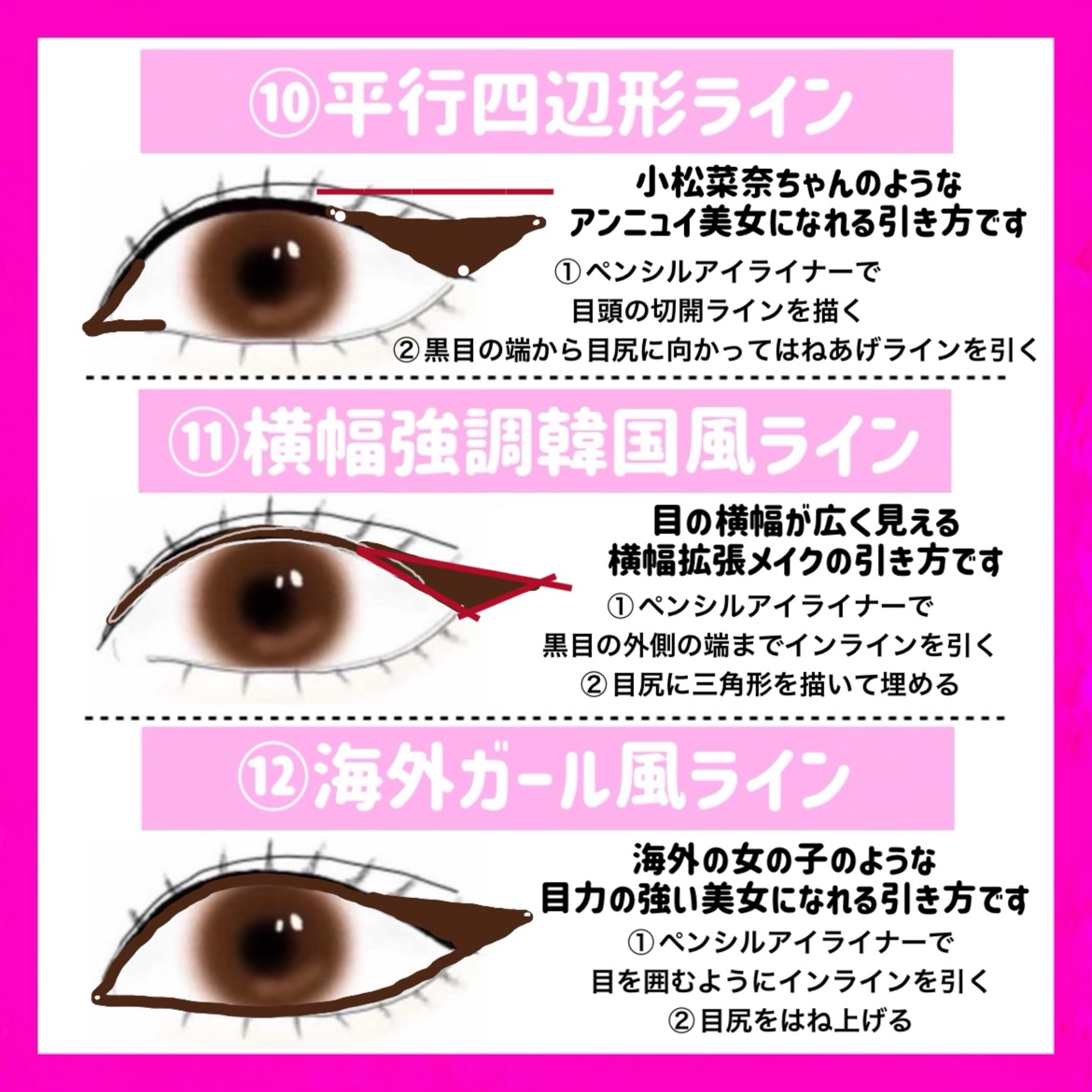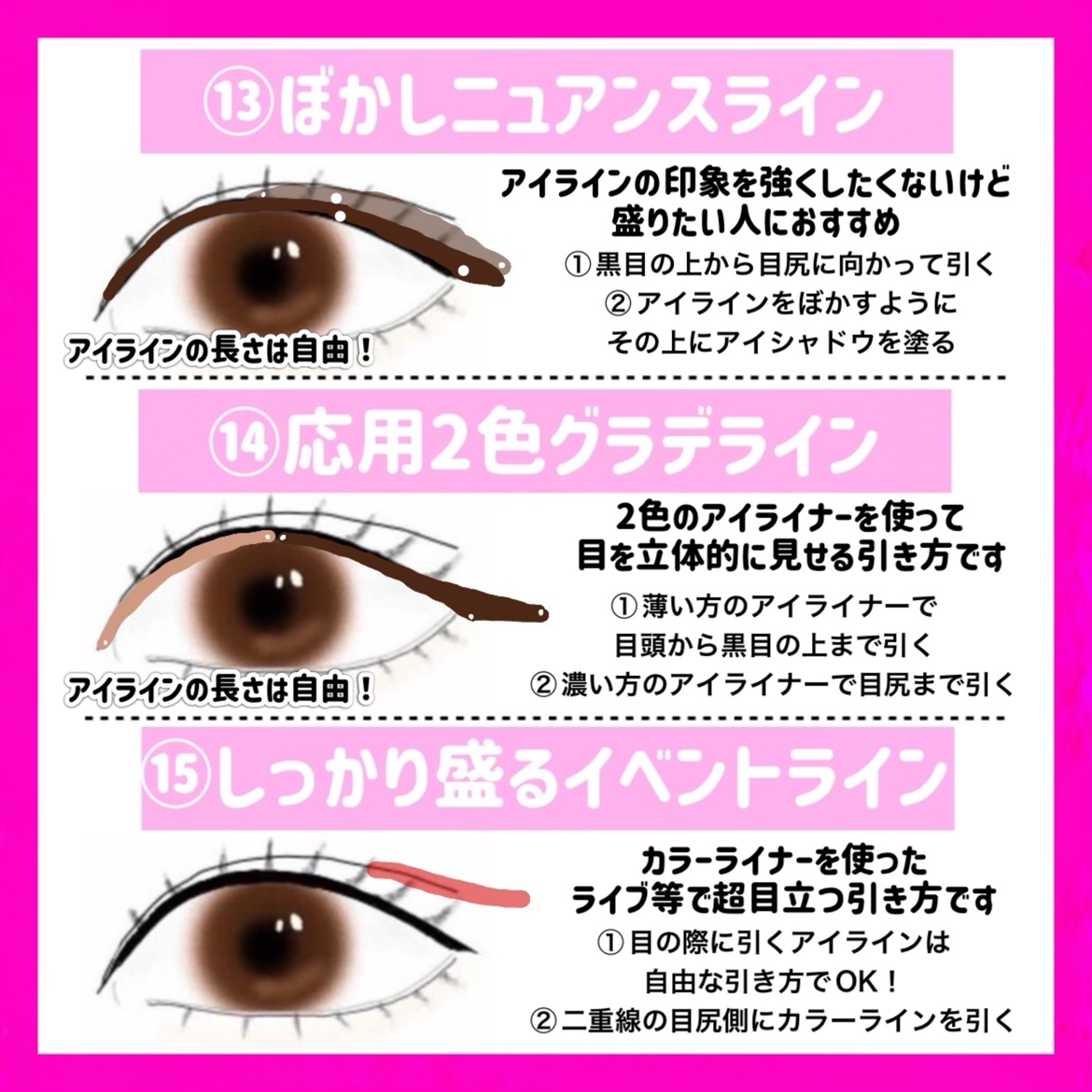 アイラインの方法一つしかできないからめっちゃ助かる!! ラブライナーのやつ良いってよく聞く👂 がんばって全部できるようにがんばる! メイク研究してみるねー!!!