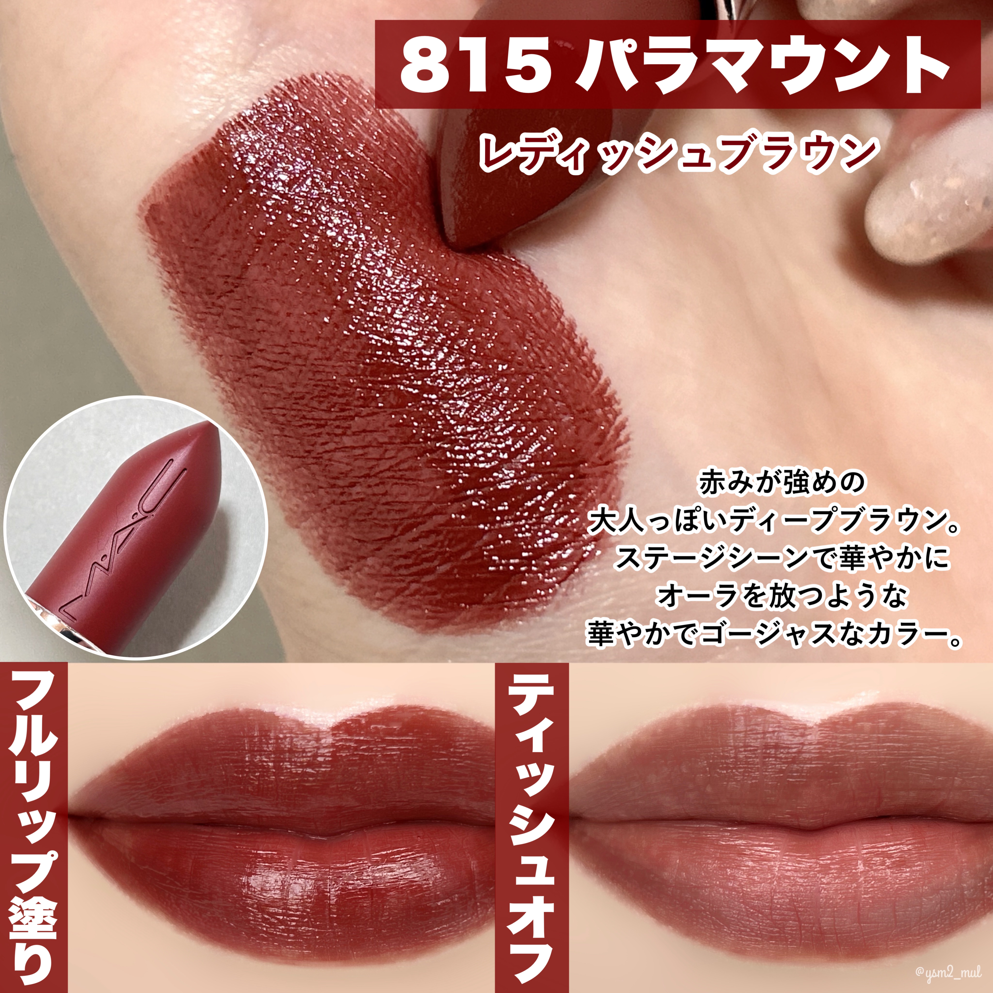 美容保湿成分をM・A・C史上最高*濃度で配合した #美容液サテンリップ リップだけじゃなくチークにも使えるのでワントーンメイクにも👌🏻 こっくり深みのある洒落感レッドブラウン