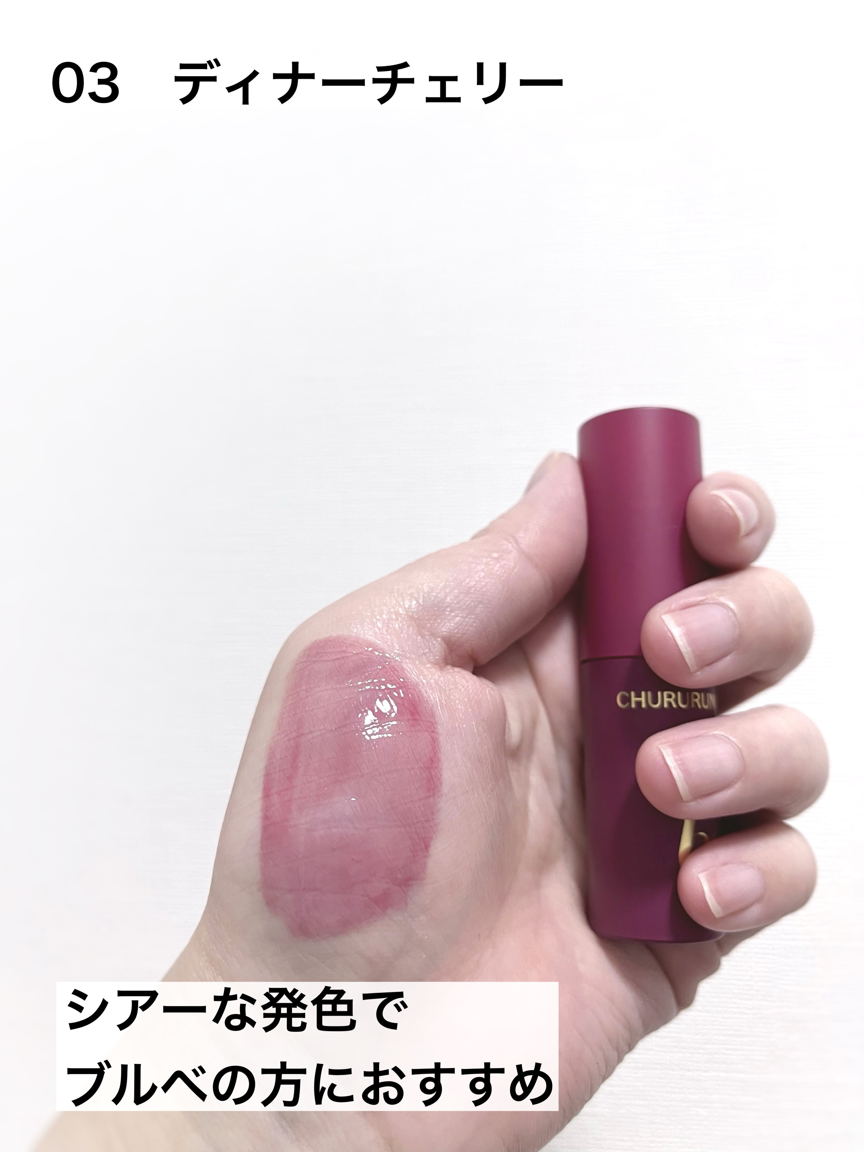 超人気だった限定色のわがままPLUMがなんとラメ入りになって復刻発売中…!! b idolでは珍しいガッツリ青みなカラーで1st2ndブルベの人は絶対に買ってほしい😭 この103はしっかり青みのゴールドラメ入り透け感プラムピンクでやや明るめまでいける1st2ndブルベに推し! ぷるっとタンフル飴みたいで質感かわいい👏🏻 保湿力もしっかりで乾燥しにくかった💋