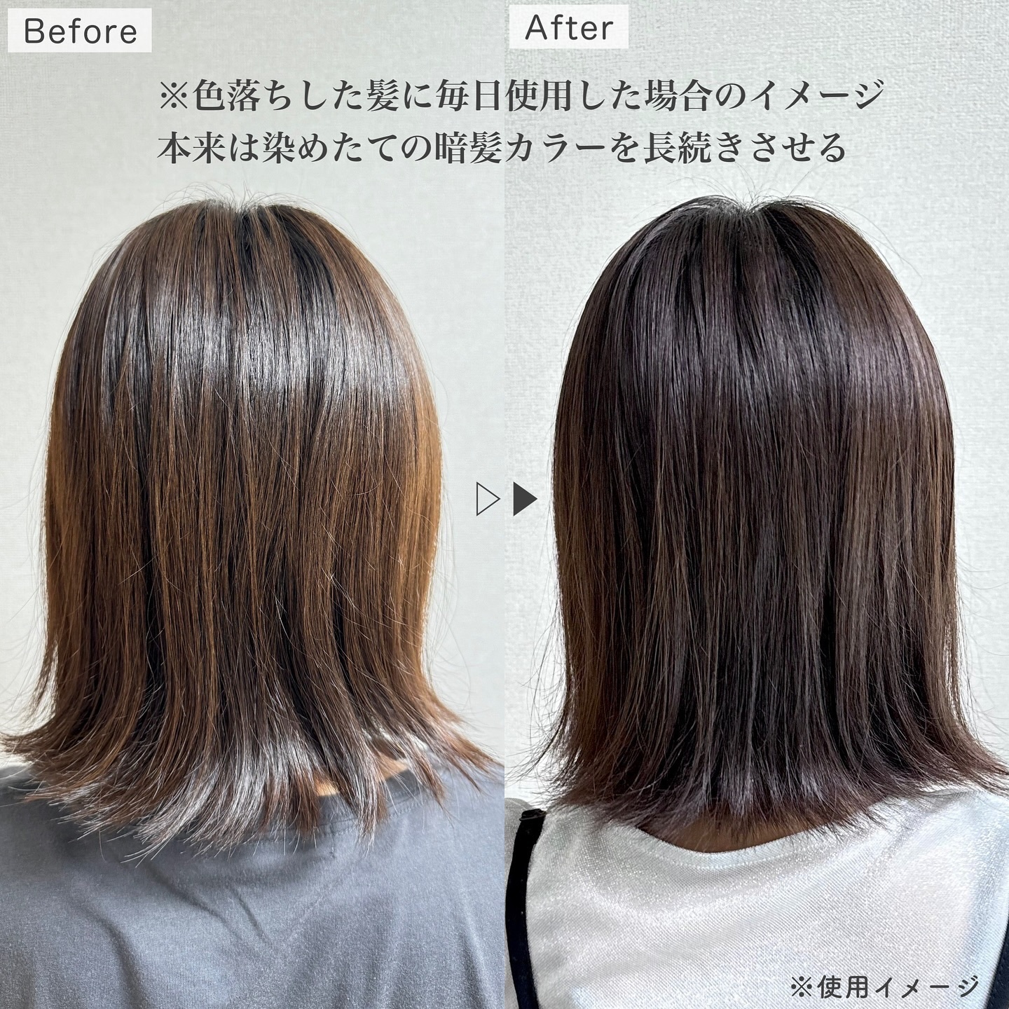 - 【暗髪用】 <シャンプー> 史上最高*1のなめらかな暗艶髪へ 1.サロン帰りの染めたてカラーキープ 暗髪カラーゆえの「色落ち時に気になる赤み」を補色のブルーでカバー 2.サロン処方ケア*2で髪の芯から集中補修 カラーで失われやすい成分を髪内部に浸透 3.カラーシャンプーなのにきしみにくい 繊細濃密泡でしっかり染めながら、しっとりとした洗いあがり <トリートメント> 史上最高*1のなめらかな暗艶髪へ 1.サロン帰りの染めたてカラーキープ 暗髪カラーゆえの「色落ち時に気になる赤み」を補色のブルーでカバー 2.グロスコーティング処方で、なめらかなツヤ髪へ 髪表面だけではなく内部補修も叶える処方に進化 3.サロン処方ケア*2で髪の芯から集中補修 カラーで失われやすい成分を髪内部に浸透 *1 シリーズ史上最高 *2サロン帰りのようななめらかな指通りのこと