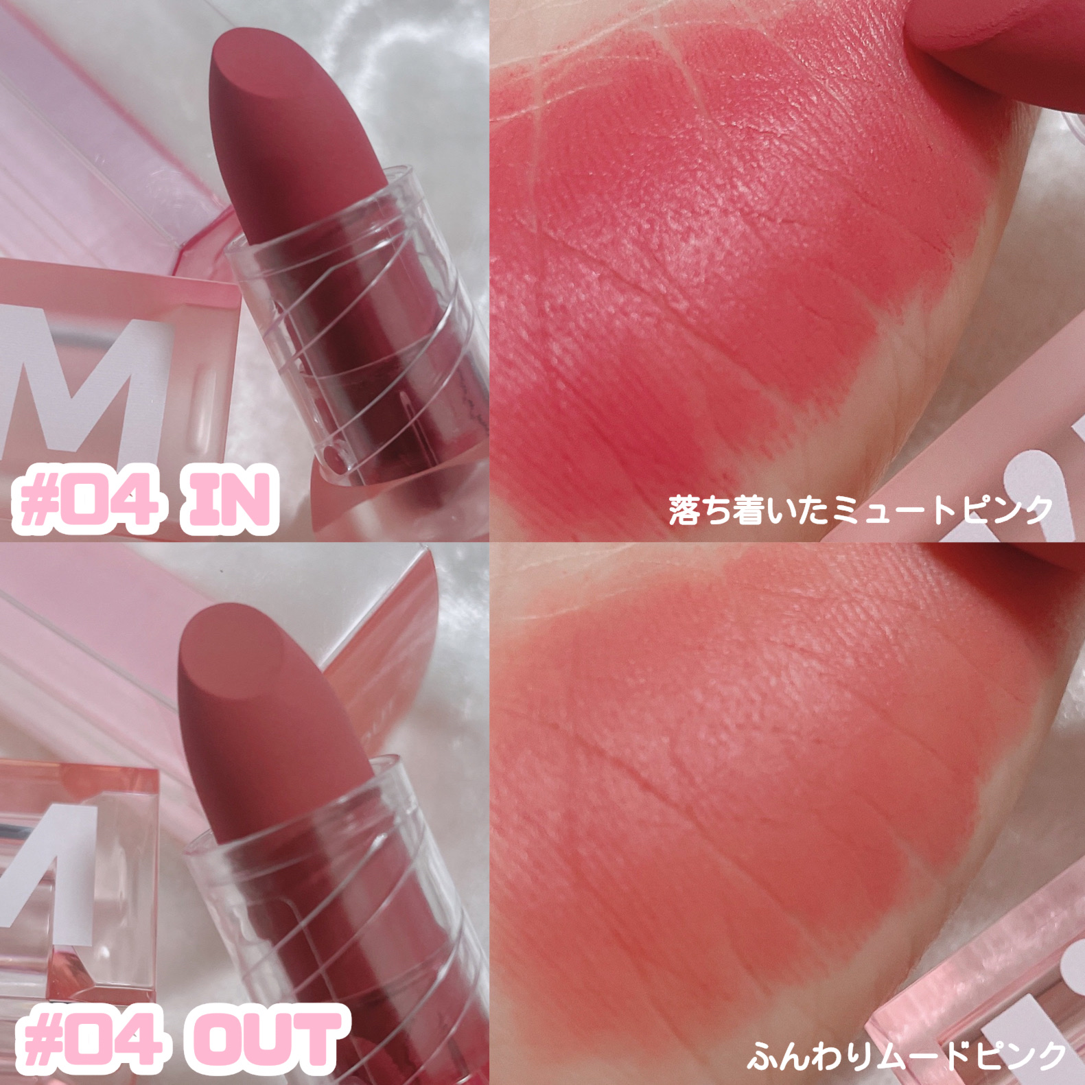 in+outカラーの組み合わせで自分だけのグラデーションリップを演出できるリップスティック✨ セミマットなテクスチャーでふわっと柔らかい唇に💋 03アウトは、ヌードトーンのベージュブラウンカラー🧸 イエベさん向けのカラーで、ベースに使うのがおすすめです! ツヤのリップを足したり、より華やかなカラーを中心にのせてもかわいい! チークにも使えるふんわりリップぜひチェックしてみてください🤍