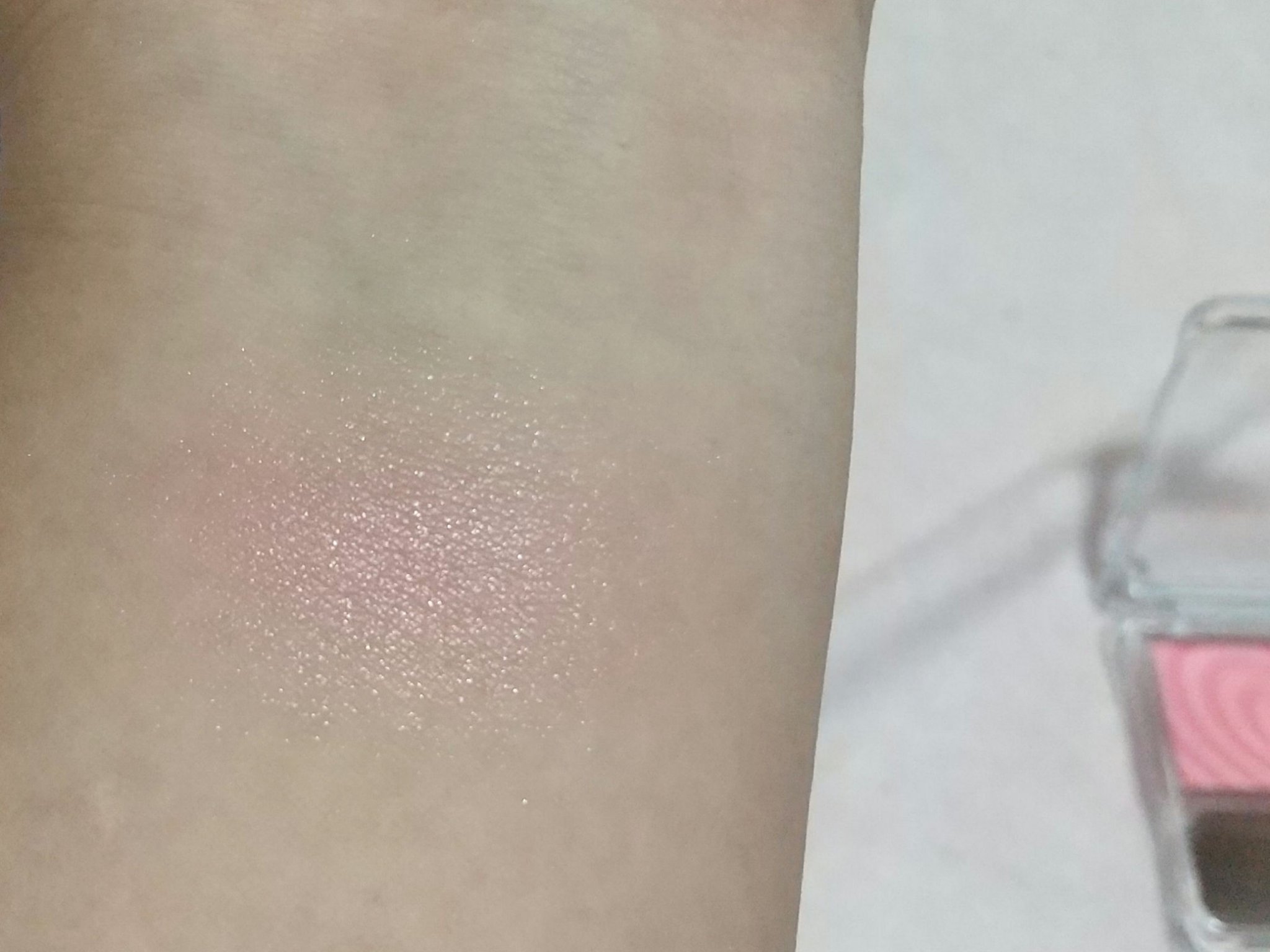 左上、左下、真ん中上、真ん中下、右上、右下という順番でスウォッチしてみました。 出してみると商品の写真より肌にのせたほうがくすみが出るかな✨という印象です😌 伸ばしやすくて指でも筆でもつけやすいです☺️💕 とっても可愛いカラーなのでオススメです💠