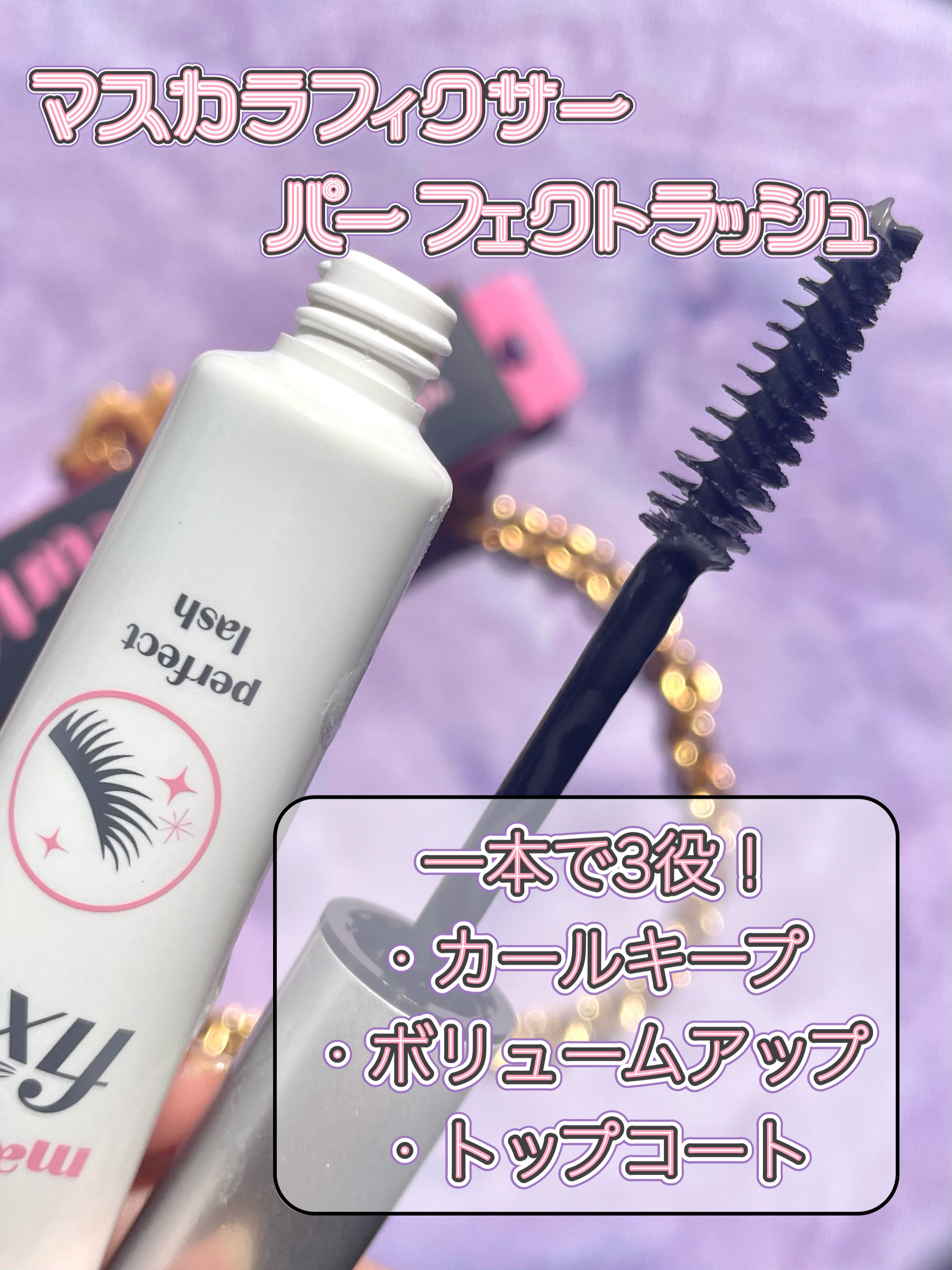 ETUDEの超優秀マスカラから新作登場♡ 黒いパケが印象的なカールフィックスマスカラ ボリュームブラック💎 カールキープ力が抜群! 朝メイクして夜お風呂入る前に鏡を見てもまつ毛はカールしたまま!感動🥺! 1本で、カールキープ・ボリュームアップ・トップコートの3役を叶える ベース&トップコート🌈