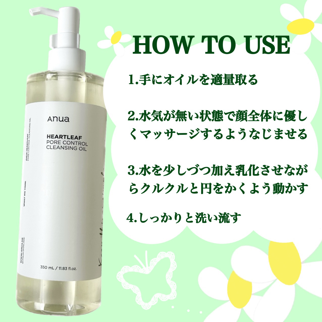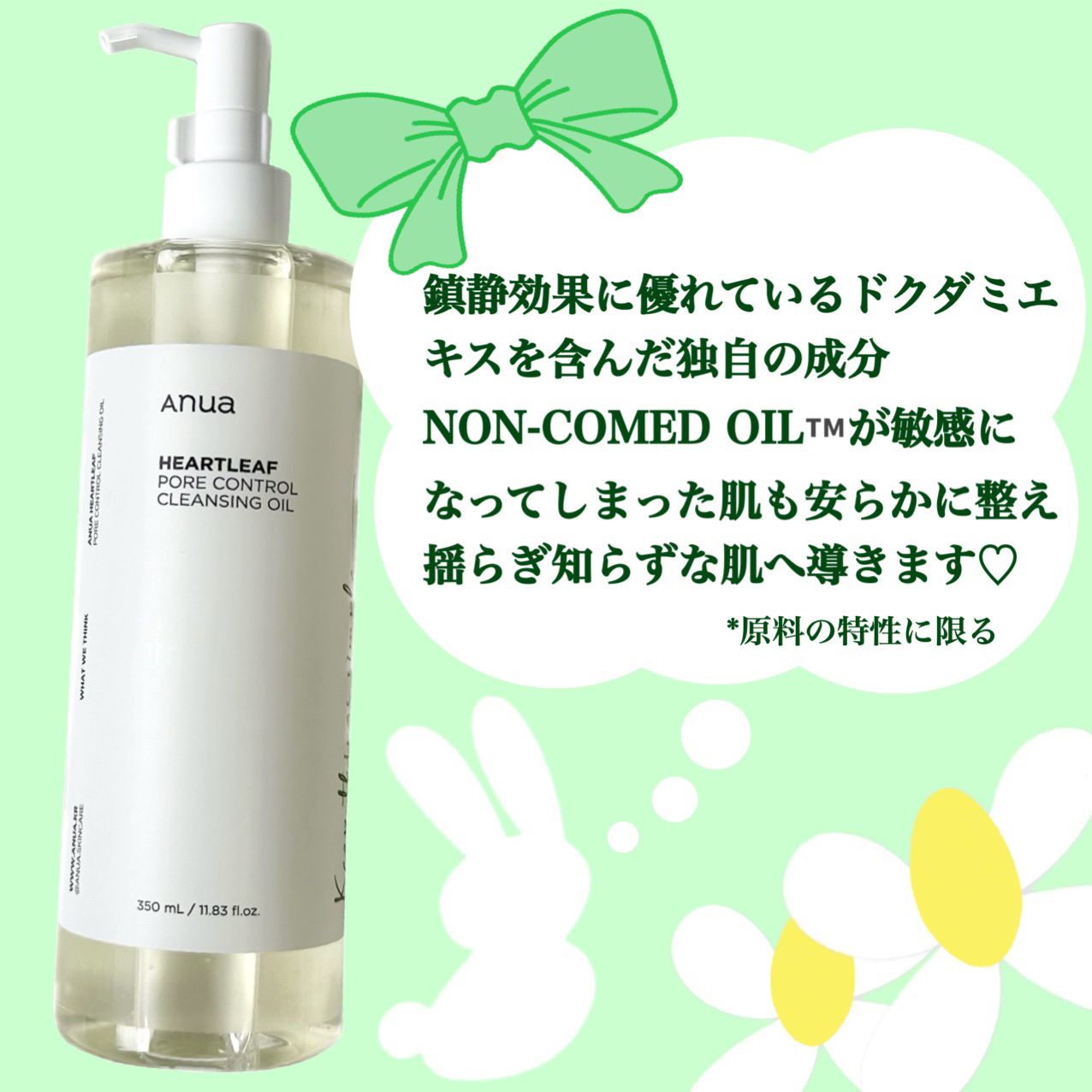 毛穴を塞がず、トラブル性の肌にも使用できる💚 ゆらいだ肌に効果的なドクダミエキスを含む独自の成分NON-COMEDOILTMが敏感になった肌を安らかに整える✨ 強力な洗浄力でメイクと黒ずみがオイルによく溶け、綺麗に除去してくれるよ🙆♀️ サラサラのオイルですごく好きな使用感!アイメイクもスルスル落ちる〜🤩
