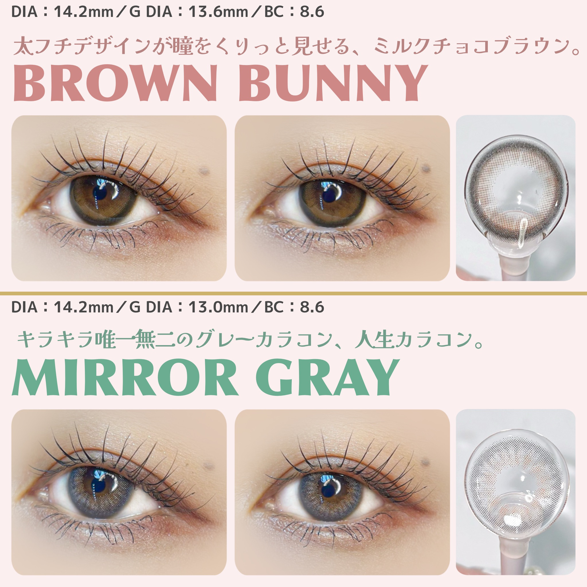 - ※2025年6月以降、商品パッケージ裏面・側面の一部表記を変更いたします。尚、これにかかる商品の交換・返品は承っておりません さりげなくいつもと違う自分をアピールしたい。 そんな女の子たちにいつまでも「いま欲しい!」と思ってもらえるレンズを目指してデザインしました。 落ち着きすぎず、明るすぎない、ナチュラルサイズで目になじみながら発色を感じられるデザインをそろえています。 カラーコンタクトレンズの不適正使用による眼障害の危険性等などがあります。 ●コンタクトレンズは高度管理医療機器です。不十分な洗浄・消毒など不適切なケアや、長時間・交換期間を超えた装用により、アレルギー性結膜炎、角膜感染症、角膜潰瘍等の重篤な眼障害が発生する危険性があります ●ご使用前に取扱説明書を確認してください 使用上の留意事項 ●眼科医院等を受診してからお求めください ●眼に異常を感じたら直ちにレンズ使用を中止し、お近くの眼科等で診察を受けてください ●医師の指示にしたがってご使用ください ●コンタクトレンズを装用する場合、自覚症状がなくても、眼科医院等での定期検査を受けてください ●レンズに不具合がある場合は使用しないでください