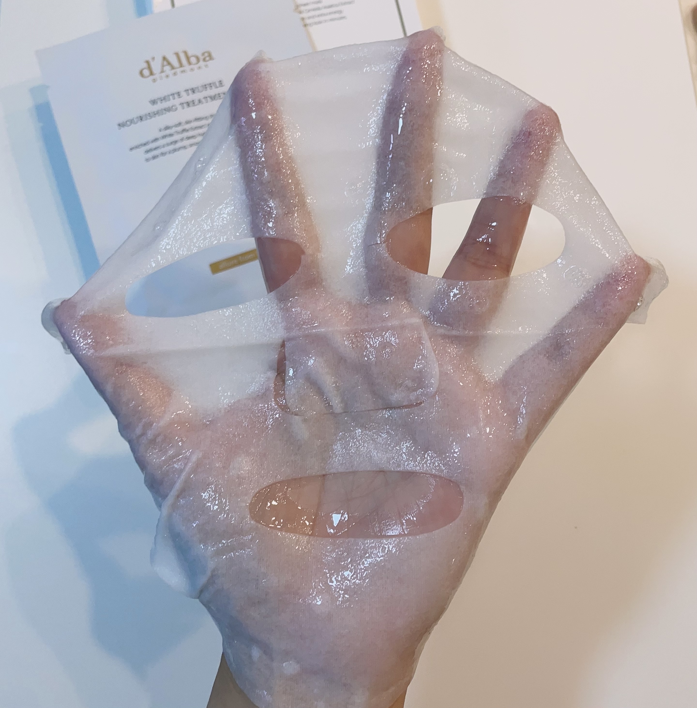 どちらも素敵な紙箱に入っています✨ ラミネートの袋に個別包装されていて持ち運びにも便利です✨ 厚手のシートマスクは、キメが細かくて、なめらかな肌触りです✨ 少しベージュかかったミルクタイプの美容液がたっぷりと染み込んでいて、肌に付けると、とてもしっとりとした使用感です💕 薄手のきめ細かなシートマスクです なめらかで肌あたりが良いです✨ 透明な美容液がたっぷりと染み込んでいて、サラッとしていながら保湿力を感じる使用感です✨