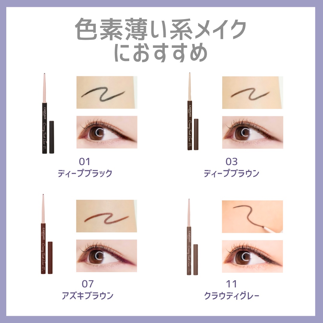 【完全保存版】キャンメイククリーミータッチライナーパーソナルカラー別&メイク別CANMAKEクリーミータッチライナー¥715パーソナルカラー別とメイク別でまとめてみました!!みなさんが使っているのは何番ですか?ぜひコメントで教えてください💕#...