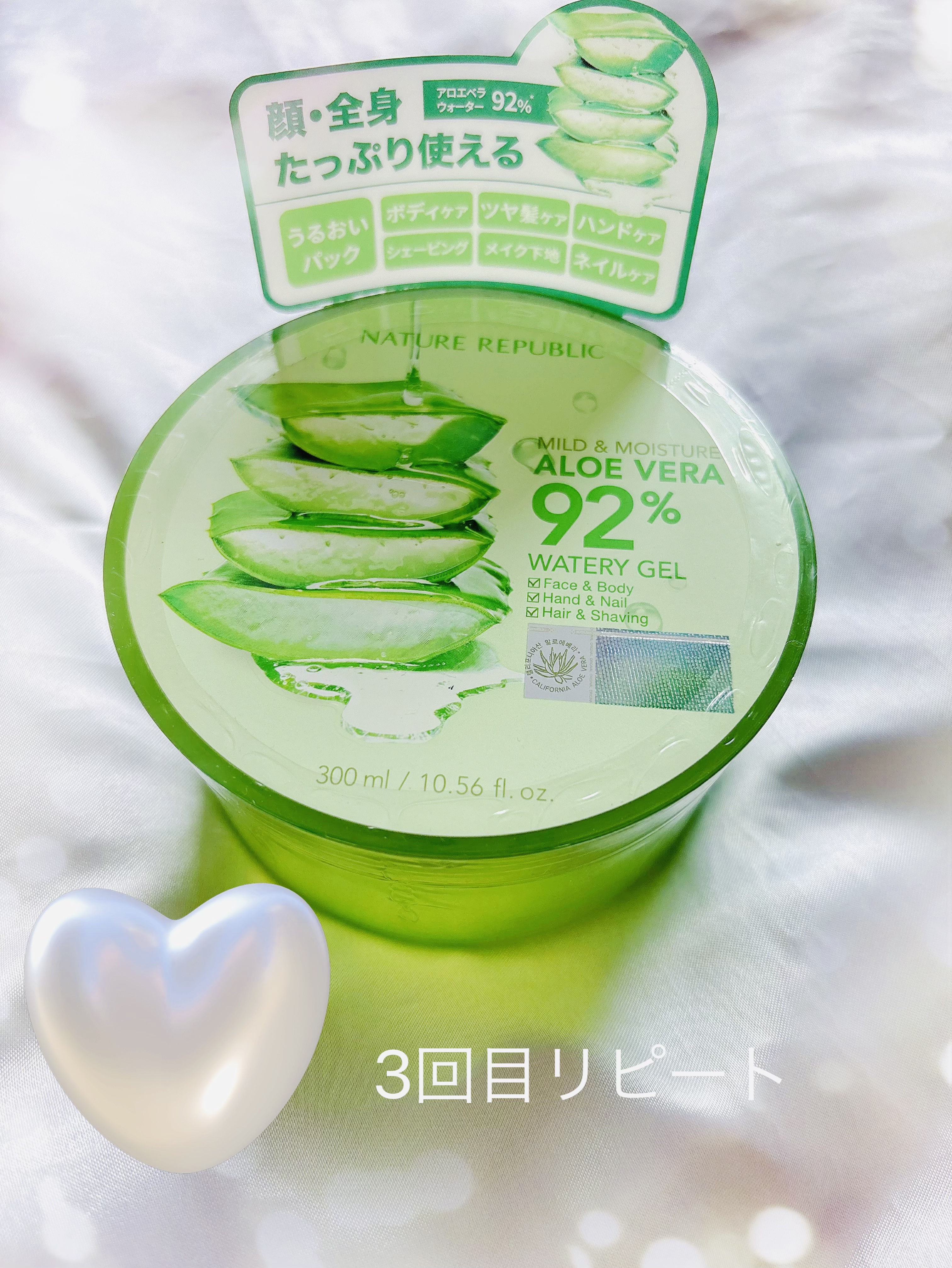アロエベラを購入しました!お風呂あがりに全身に塗ってみたよ~!いい香りがした❤️ まだ1回しか使ってないからは4つにしました😄 毎日使って綺麗になるぞ~🥺❤️! #ネイチャーリパブリック #マイルド&モイスチャーアロエジェル #ジャータイプ300ml