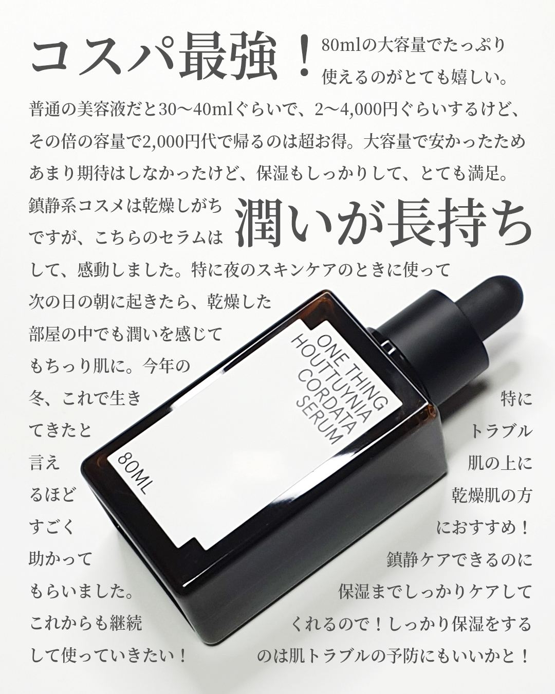 - 敏感肌・トラブル肌のケアをサポートするドクダミ葉そのものをセラムに。 8種ヒアルロン酸配合で長時間うるおいが続くセラム。