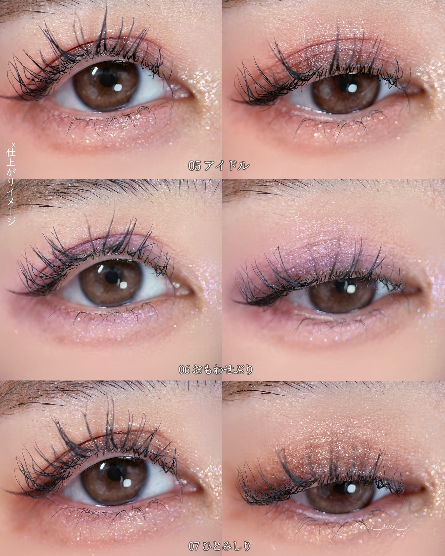 - <01 甘えんぼ> マイカ、タルク、ホウケイ酸(Ca/Al)、酸化チタン、ジメチコン、合成ワックス、パルミチン酸エチルヘキシル、ポリメタクリル酸メチル、ステアリン酸亜鉛、パルミチン酸亜鉛、ポリブテン、酢酸トコフェロール、ビスジグリセリルポリアシルアジペート-2、マンガンバイオレット、トリエトキシカプリリルシラン、フェノキシエタノール、酸化鉄、カプリリルグリコール、赤226、グンジョウ、酸化スズ、シリカ、赤202 <02 わがまま> タルク、マイカ、ジメチコン、合成ワックス、ポリメタクリル酸メチル、酸化チタン、酸化鉄、ステアリン酸亜鉛、ホウケイ酸(Ca/Na)、パルミチン酸エチルヘキシル、ホウケイ酸(Ca/Al)、パルミチン酸亜鉛、合成フルオロフロゴパイト、ポリブチレンテレフタレート、ポリブテン、トリエトキシカプリリルシラン、フェノキシエタノール、ビスジグリセリルポリアシルアジペート-2、酢酸トコフェロール、カプリリルグリコール、シリカ、赤226、酸化スズ、アクリレーツコポリマー <03 ツンデレ> マイカ、タルク、酸化チタン、ジメチコン、ホウケイ酸(Ca/Al)、合成ワックス、合成フルオロフロゴパイト、酸化鉄、パルミチン酸エチルヘキシル、ポリメタクリル酸メチル、ステアリン酸亜鉛、パルミチン酸亜鉛、ポリブテン、カオリン、ビスジグリセリルポリアシルアジペート-2、トリエトキシカプリリルシラン、マンガンバイオレット、フェノキシエタノール、シリカ、酢酸トコフェロール、カプリリルグリコール、赤226、酸化スズ <04 気まぐれ> マイカ、タルク、ホウケイ酸(Ca/Al)、合成フルオロフロゴパイト、合成ワックス、ジメチコン、パルミチン酸エチルヘキシル、ステアリン酸亜鉛、ポリメタクリル酸メチル、酸化鉄、パルミチン酸亜鉛、酸化チタン、ポリブテン、ビスジグリセリルポリアシルアジペート-2、ホウケイ酸(Ca/Na)、酢酸トコフェロール、マンガンバイオレット、フェノキシエタノール、シリカ、カプリリルグリコール、トリエトキシカプリリルシラン、酸化スズ <05 アイドル> タルク、マイカ、合成フルオロフロゴパイト、ジメチコン、合成ワックス、シリカ、酸化チタン、カオリン、酸化鉄、ミリスチン酸Mg、ホウケイ酸(Ca/Al)、窒化ホウ素、パルミチン酸エチルヘキシル、ステアリン酸亜鉛、水酸化Al、パルミチン酸亜鉛、トリエトキシカプリリルシラン、酢酸トコフェロール、フェノキシエタノール、ポリイソブテン、黄4、ビスジグリセリルポリアシルアジペート-2、カプリリルグリコール、赤202、赤201、酸化スズ <07 ひとみしり> タルク、マイカ、ホウケイ酸(Ca/Al)、合成ワックス、パルミチン酸エチルヘキシル、ジメチコン、シリカ、カオリン、酸化鉄、ミリスチン酸Mg、酸化チタン、ステアリン酸亜鉛、窒化ホウ素、合成フルオロフロゴパイト、パルミチン酸亜鉛、トリ(カプリル酸/カプリン酸)グリセリル、ビスジグリセリルポリアシルアジペート-2、トリエトキシカプリリルシラン、フェニルトリメチコン、フェノキシエタノール、(ビニルジメチコン/メチコンシルセスキオキサン)クロスポリマー、酢酸トコフェロール、カプリリルグリコール、ポリイソブテン、酸化スズ、赤202