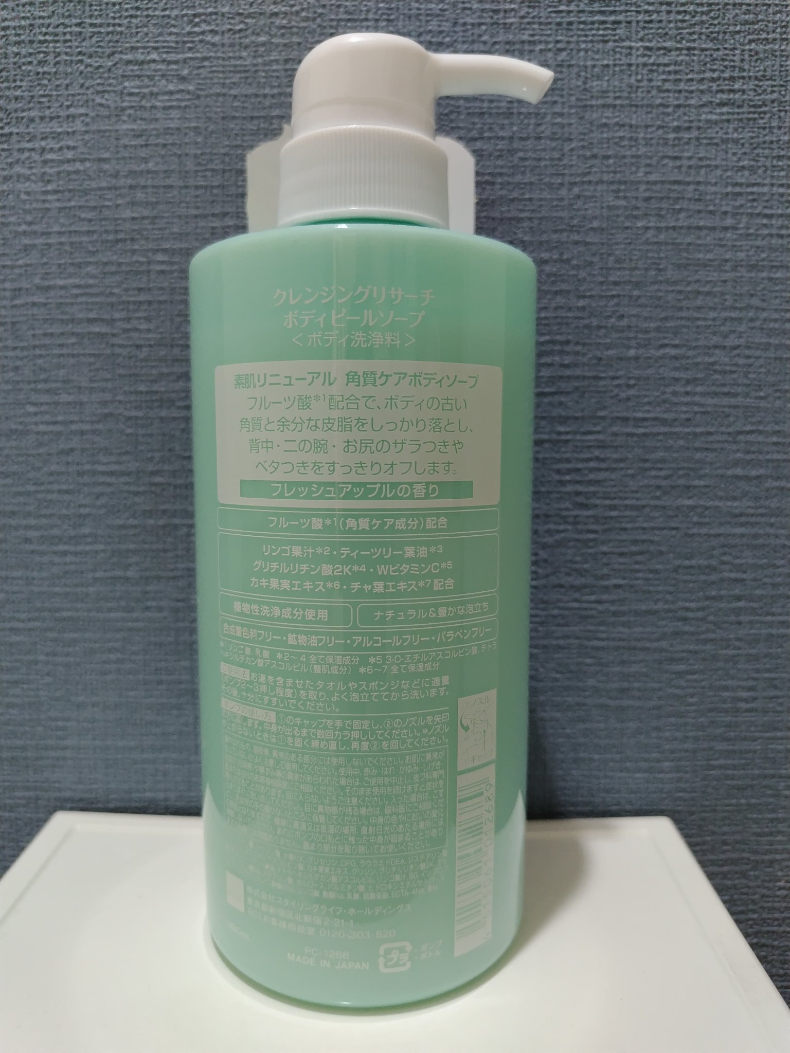 香りは洗顔と同じフレッシュアップルの香り🍏お風呂がリンゴの爽やかな香りでいっぱいになります💚 ピーリング系のボディソープだけあって洗い上がりは肌がすべすべに!! 泡切れもよく、さっぱりしてとても気持ちいいボディソープでした🫧