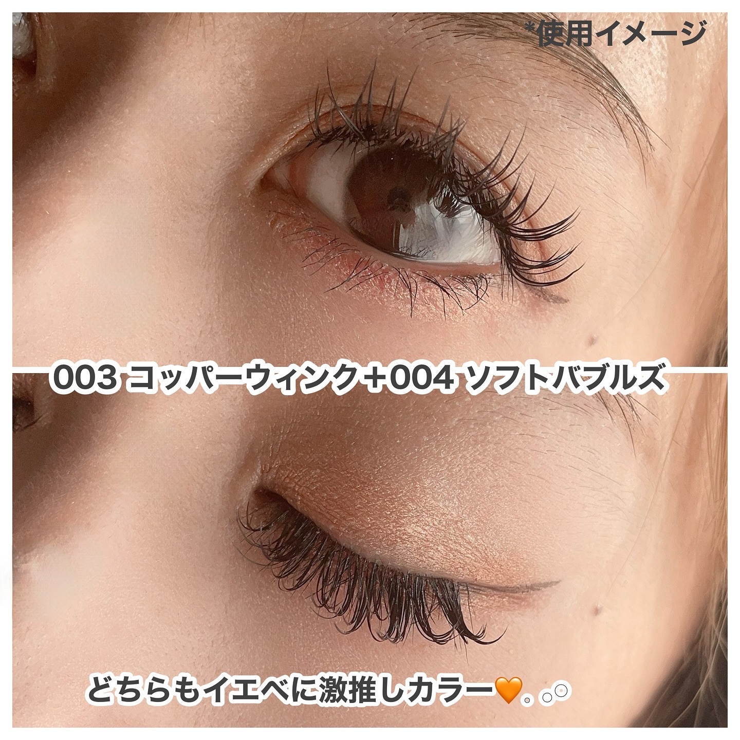 驚きの塗り心地。 スルスル〜っとなめらかに描ける!スティックタイプだけど力要らずな所に魅力感じた😍💕 ウォータープルーフ処方だから汗や水にも強く、長く綺麗なメイクを楽しめるよ🥰💕 私は004ソフトバブルズが使いやすいなって思った!😍 もちろん単色使いも可愛いけど、合わせて使うのも🙆♀️✨️