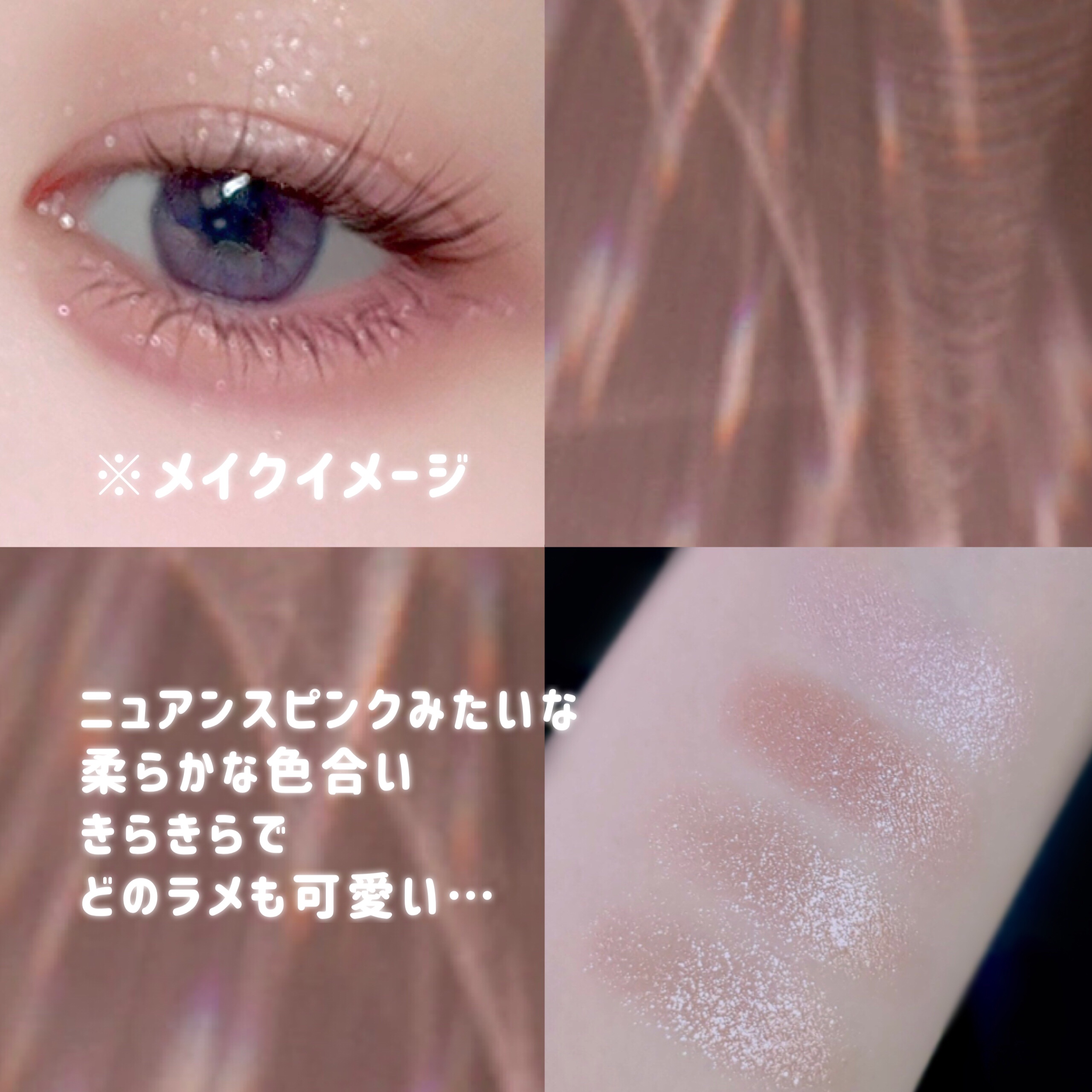 買って後悔しない。 きらきら感とくすみピンクベージュが良すぎて 目元に載せた瞬間、このアイシャドウの虜になります🥀 普通にまぶたにのせるのもいいけれど、下まぶたにつけるとよりアンニュイな雰囲気に💭 ぜひ手に取ってみて下さい❕