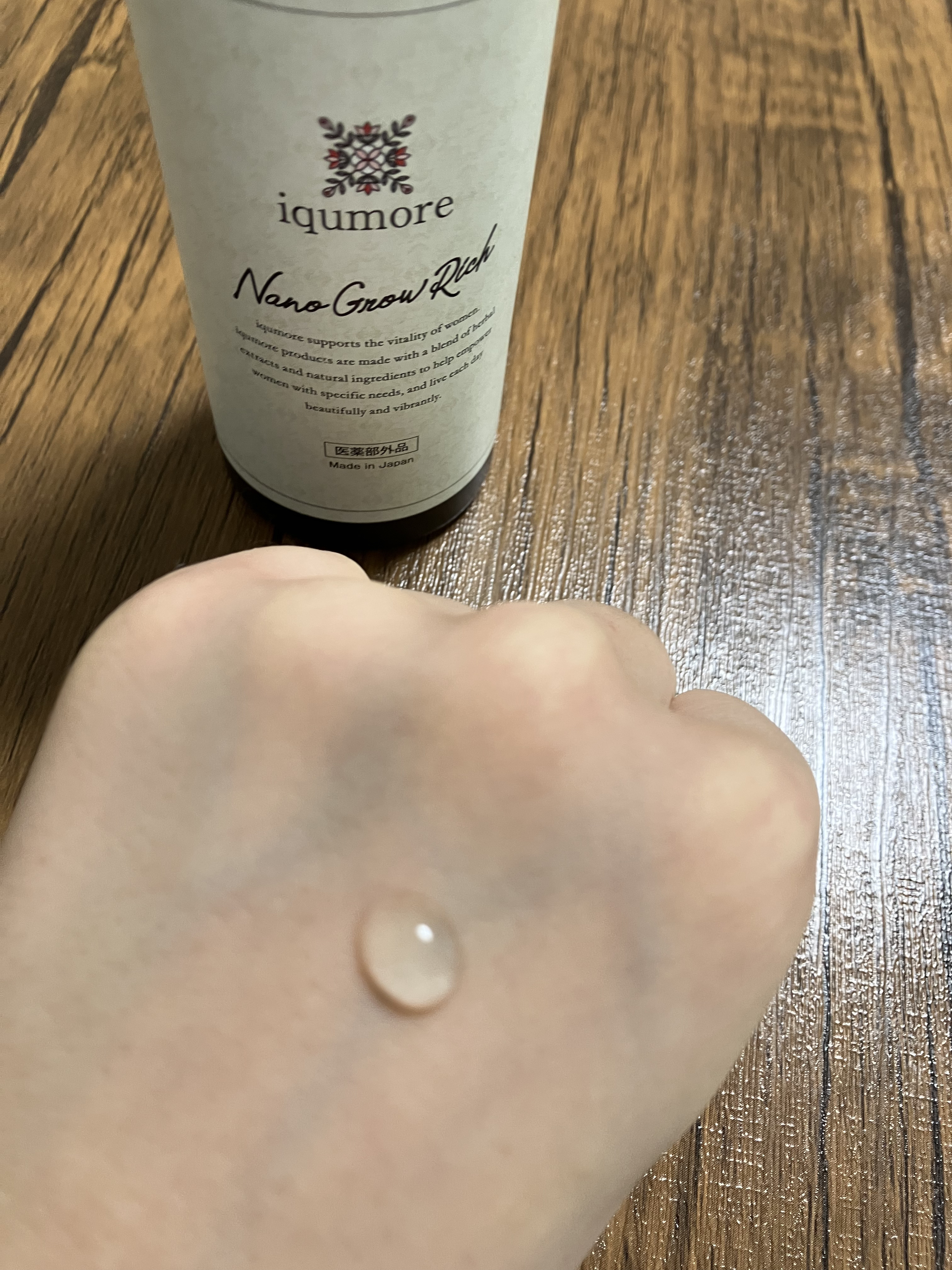 こんなにとろみのる育毛剤は初めてかも! イクモアナノグロウリッチ育毛剤は、気になる薄毛や抜け毛のために有効成分3種類を配合し、健やかで力強い前向きな毛髪へ導いてくれるんだそう。 透明でとろみ感がありまるで濃厚な美容液のようなジェル的質感。液だれしにくく、頭皮マッサージがしやすい工夫がされていてインテリアに馴染むナチュラルなデザインなのも嬉しいポイント。 育毛成分だけでなく、健やかな毎日に欠かせない様々な厳選成分など自然の恵みをふんだんに使用し、頭皮環境や髪の毛のコンディションを整えてくれるとのことで、毎日使っていきたいなと感じました✨