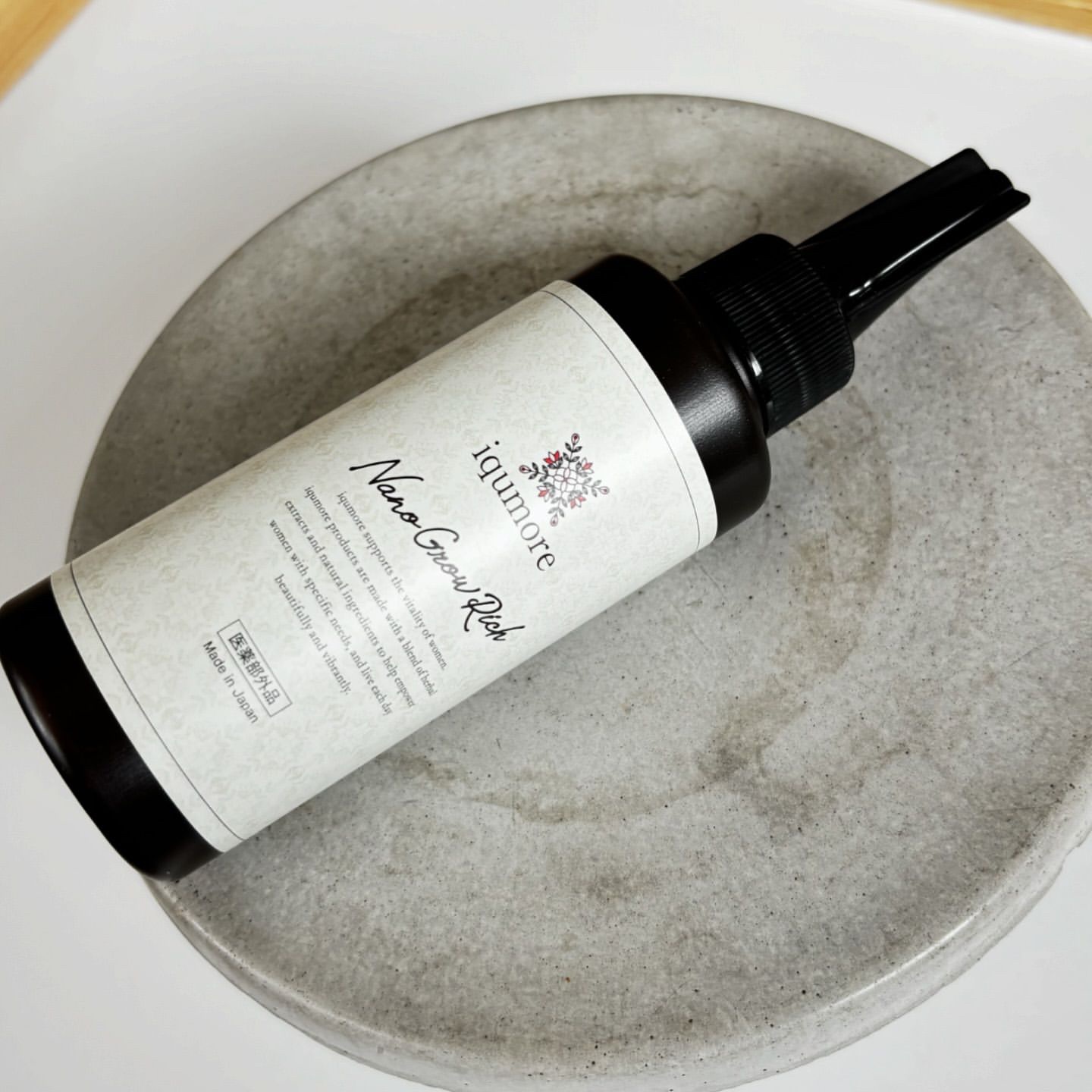 一日3分、すぐに始められるお手軽育毛習慣✨ イクモアナノグロウリッチ育毛剤はとてもナチュラルでおしゃれなデザインボトル🍀 気になる薄毛や抜け毛のために有効成分3種類を配合し、健やかで力強い前向きな毛髪へ導きます。 ノズルが細く設計されてるので少量ずつの使用が可能ですし、頭皮にピンポイントに塗布できるのがイイです♪👍