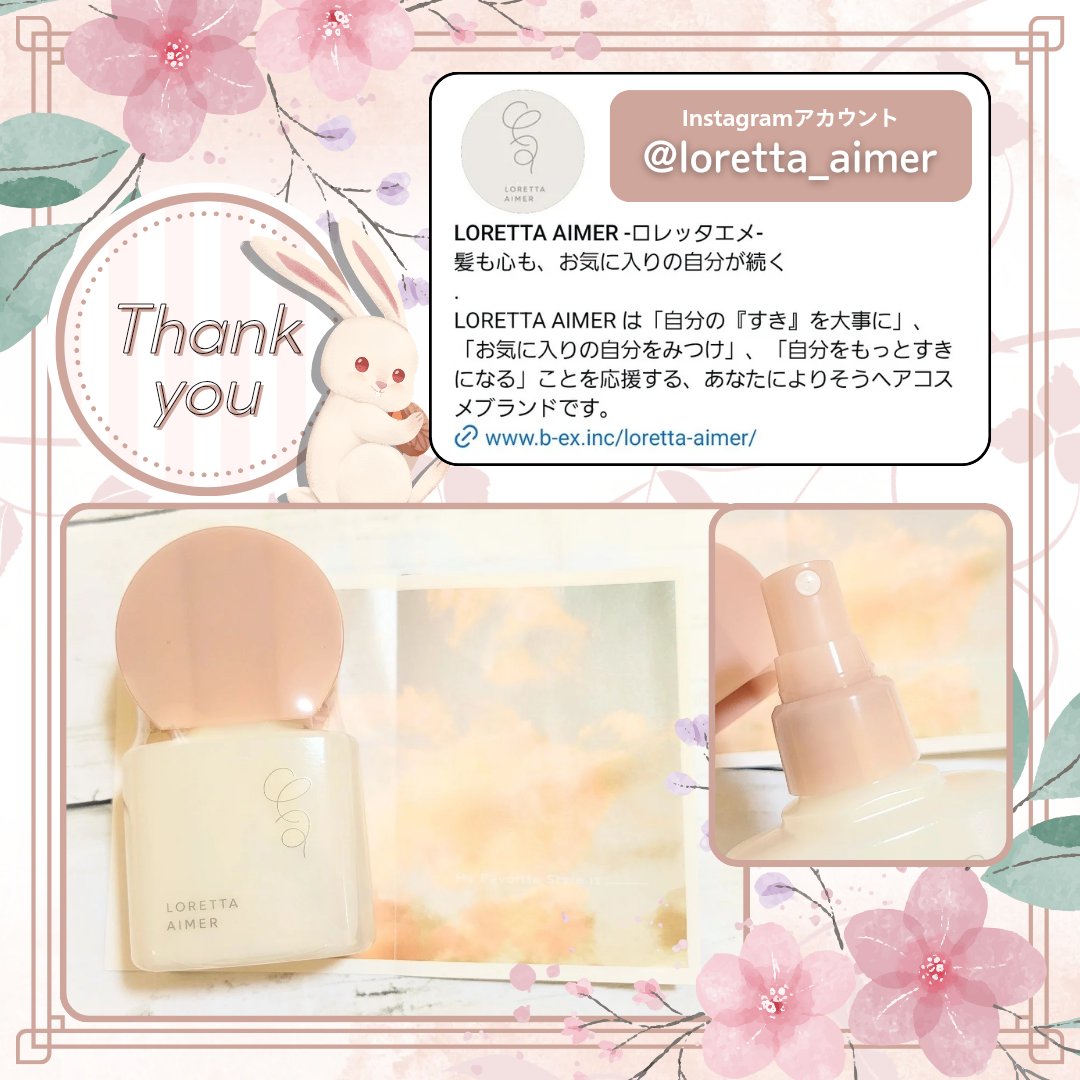 item▷#LORETTAAIMER#ミストケアオイルドライヤーによるダメージから髪を守るミストタイプのアウトバスケアオイル。細かいミストなので重たくならずに使えてドライヤー後の髪がさらさらうるうるの仕上がり。香りもあまり強くないので使いやす...