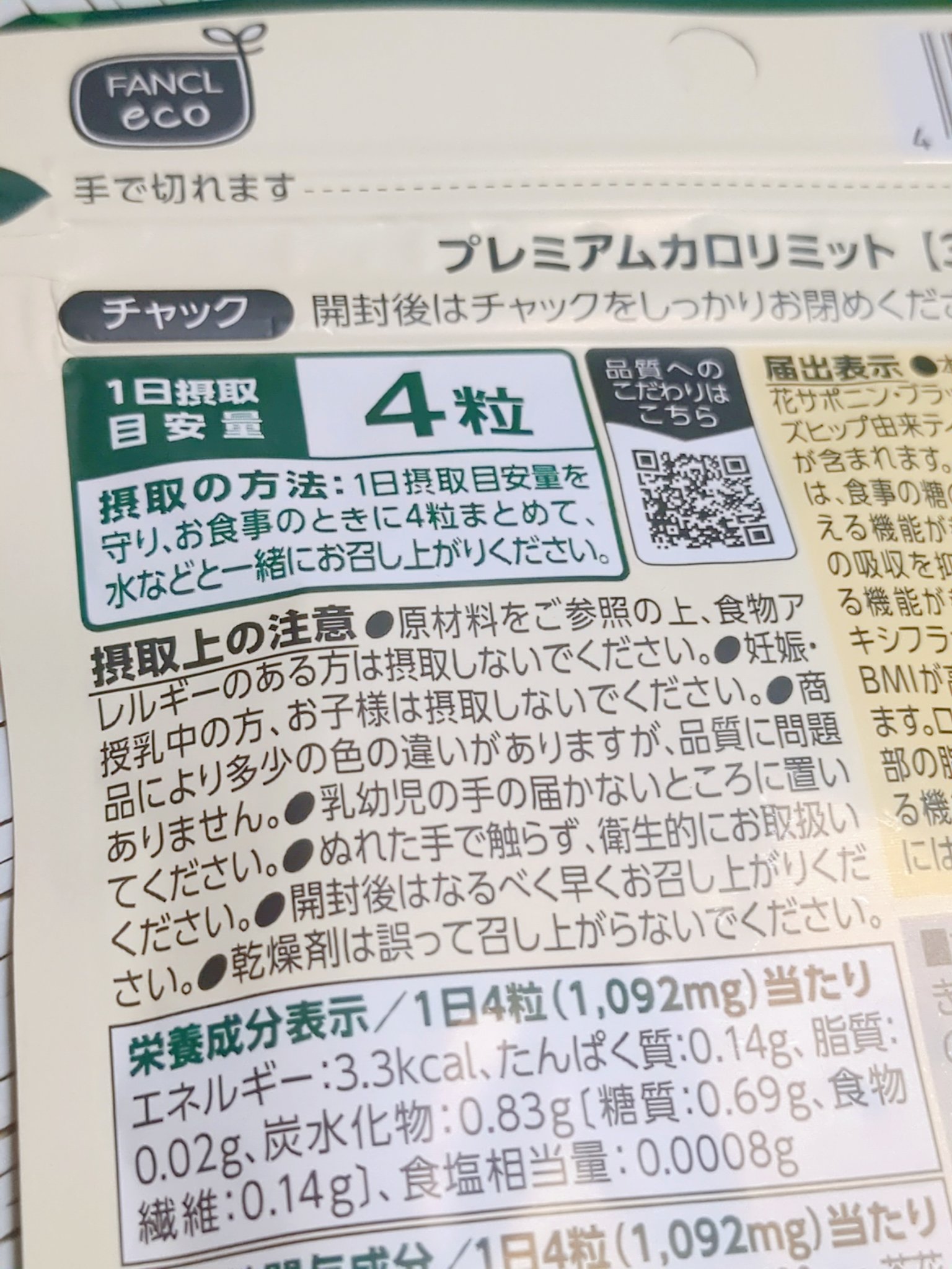 - 【機能性表示食品】 おいしく幸せに食べたい気持ちをサポートするファンケル「カロリミット」ブランドに本気で取り組みたい人に向けた“カロリミット史上最強”の製品が誕生 <お客様の「変わりたい」をサポートする製品設計> カロリミットブランドが持つ、糖と脂肪の吸収を抑える食事サポート機能はそのままに、お客様の変わりたいというニーズをサポートするために、新たに高めの BMI を低下させる機能が報告されている「ローズヒップ由来ティリロサイド」を加えました。 またお通じを改善する機能が報告されている「植物性乳酸菌 K-1(L. casei 327)」を配合。 (届出表示) 本品には桑の葉イミノシュガー・キトサン・茶花サポニン・ブラックジンジャー由来ポリメトキシフラボン・ローズヒップ由来ティリロサイド・植物性乳酸菌K-1(L. casei 327)が含まれます。 桑の葉イミノシュガー・キトサン・茶花サポニンは、食事の糖の吸収を抑える機能、食後の血糖値の上昇を抑える機能が報告されています。茶花サポニンは、食事の脂肪の吸収を抑える機能、食後の血中中性脂肪値の上昇を抑える機能が報告されています。ブラックジンジャー由来ポリメトキシフラボンは、脂肪の代謝を助け消費しやすくする機能、BMIが高めの方の腹部の脂肪を減らす機能が報告されています。ローズヒップ由来ティリロサイドは、BMIが高めの方の腹部の脂肪・体重の減少をサポートし、高めのBMIを低下させる機能が報告されています。 植物性乳酸菌 K-1(L. casei 327)には、お通じを改善する機能が報告されています。 <継続しやすい製剤設計> 当社独自の製剤技術により、目安量の 1 日 4 粒を実現し、お客様に継続して摂取いただけるよう工夫しました。 併せて剤形のコーティング技術により、配合成分が持つ独特の臭いなどを抑え、食事の邪魔をしない設計にこだわりました。 <親しみやすさと高品質な印象を両立したパッケージデザイン> 製品特長が分かりやすく、選びやすいことに加え、カロリミットブランドが持つ明るく親しみやすい印象と上品な金色による高級・高品質な印象の両立にこだわりました。 【アレルゲン(28品目中)】 かに 【ご注意】 ※妊娠・授乳中の方、未成年の方はお召し上がりにならないでください。 ※本品は、特定保健用食品と異なり、消費者庁長官による個別審査を受けたものではありません。 ※疾病の診断、治療、予防を目的としたものではありません。 ※食生活は、主食、主菜、副菜を基本に、食事のバランスを。 9月下旬から順次、一部コンビニエンスストアやドラッグストア、EC モールで先行発売を予定しています。