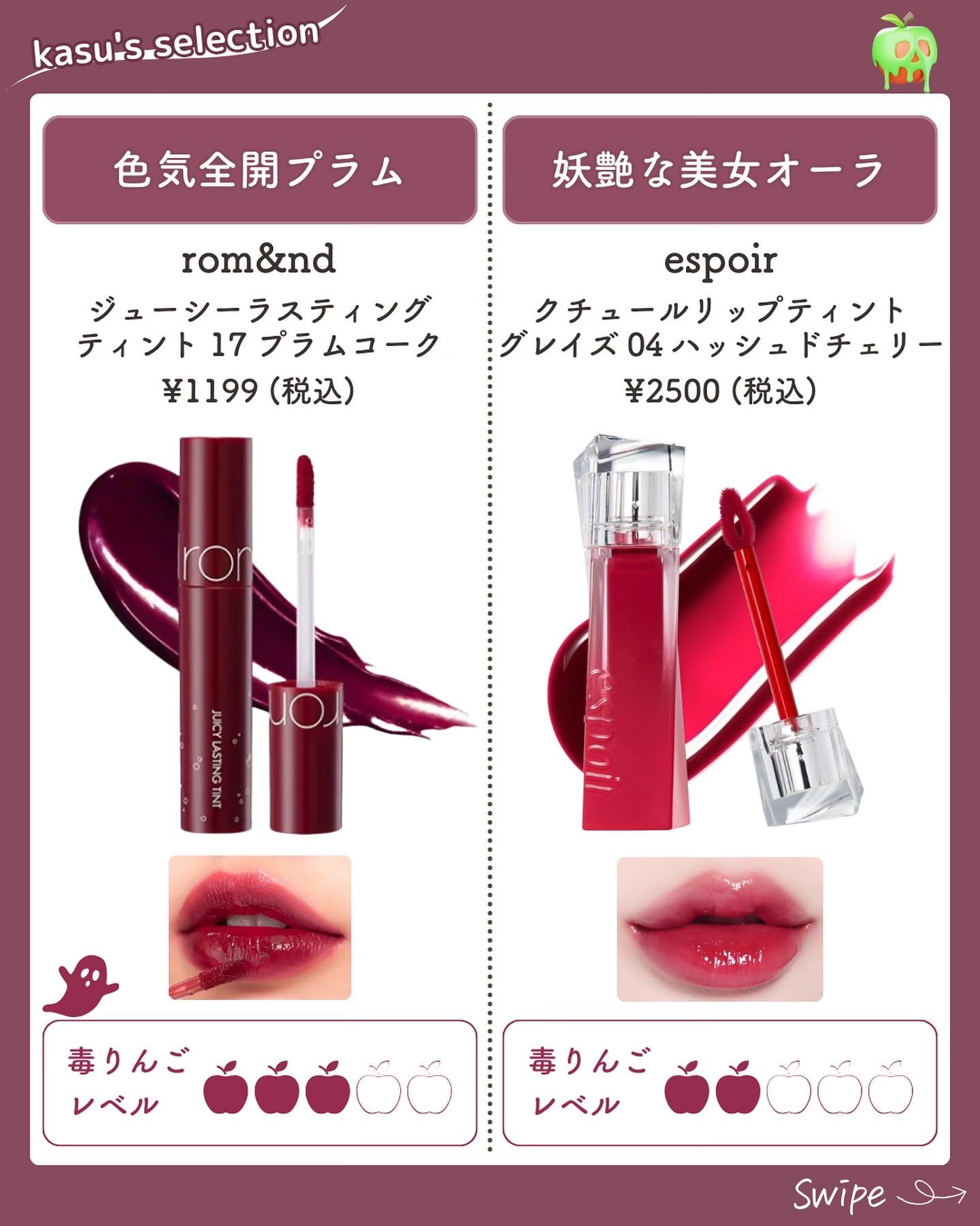 何故か2回投稿されてました💦一つ消したのですが、またエラーになってましたらすみません💦【悪女なクチビル】📋A'pieuジューシーパンスパークリングティントJRD02禁断の毒りんごワクチン2回目が終わったご褒美にずっと気になっていたリップを購入...