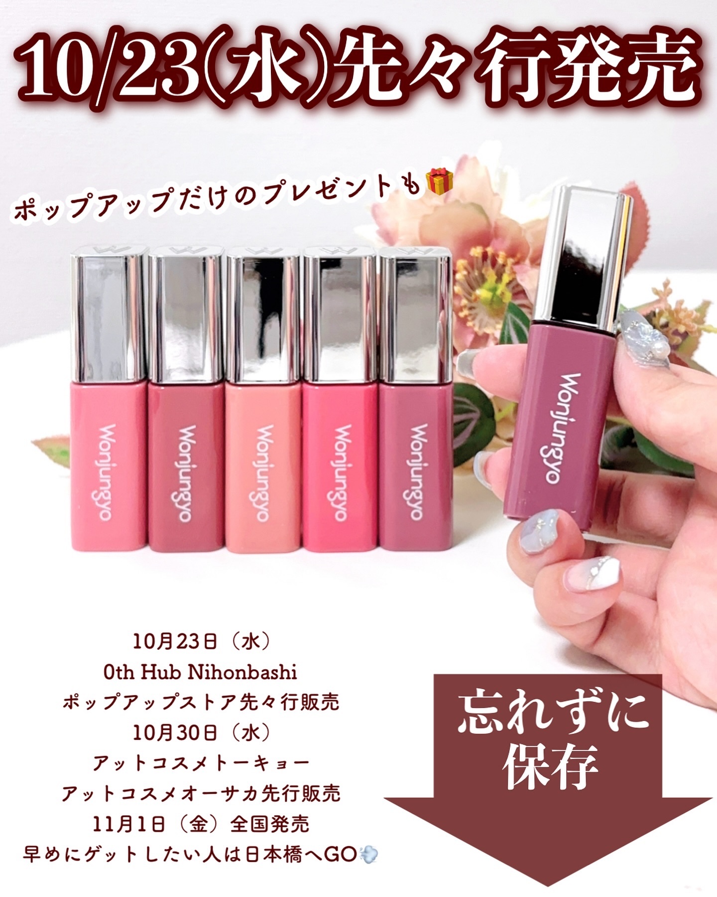 - ●クリアキャンディコーディング処方 あめ玉のようにクリアで厚みのあるオイルベールで、ジューシーな唇に。 ●つけたてカラーが長持ち 高粘度のオイルが密着性を高め、時間が経ってもカラーキープ。 ●3種のうるおう美容液成分in オリーブ果実油、アルガニアスピノサ核油、ウンシュウミカン果皮エキス(すべて保湿成分) 2024年10月23日(水)ポップアップストアにて先々行販売 2024年10月30日(水)アットコスメトーキョー・アットコスメオーサカにて先行販売 2024年11月1日(金)全国発売