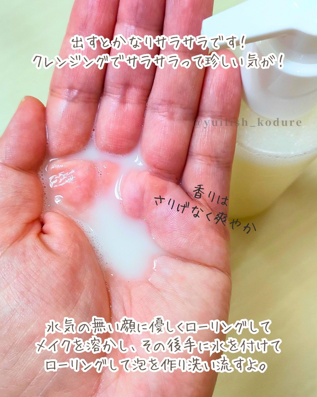 | 重たくないサラサラとしたテクスチャ!洗い上がりはしっとりしつつすべすべ✨ | 詳細を見る | ||