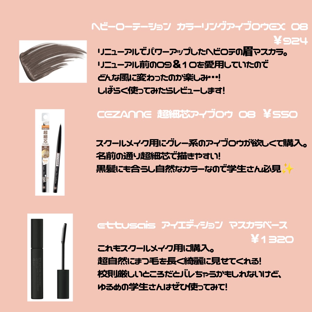 幼く見られたい大人顔JKのピンクメイクレシピ📝 CANMAKE マーメイドスキンジェルUV C03 ¥770 CEZANNE ストレッチコンシーラー 30 ¥660
