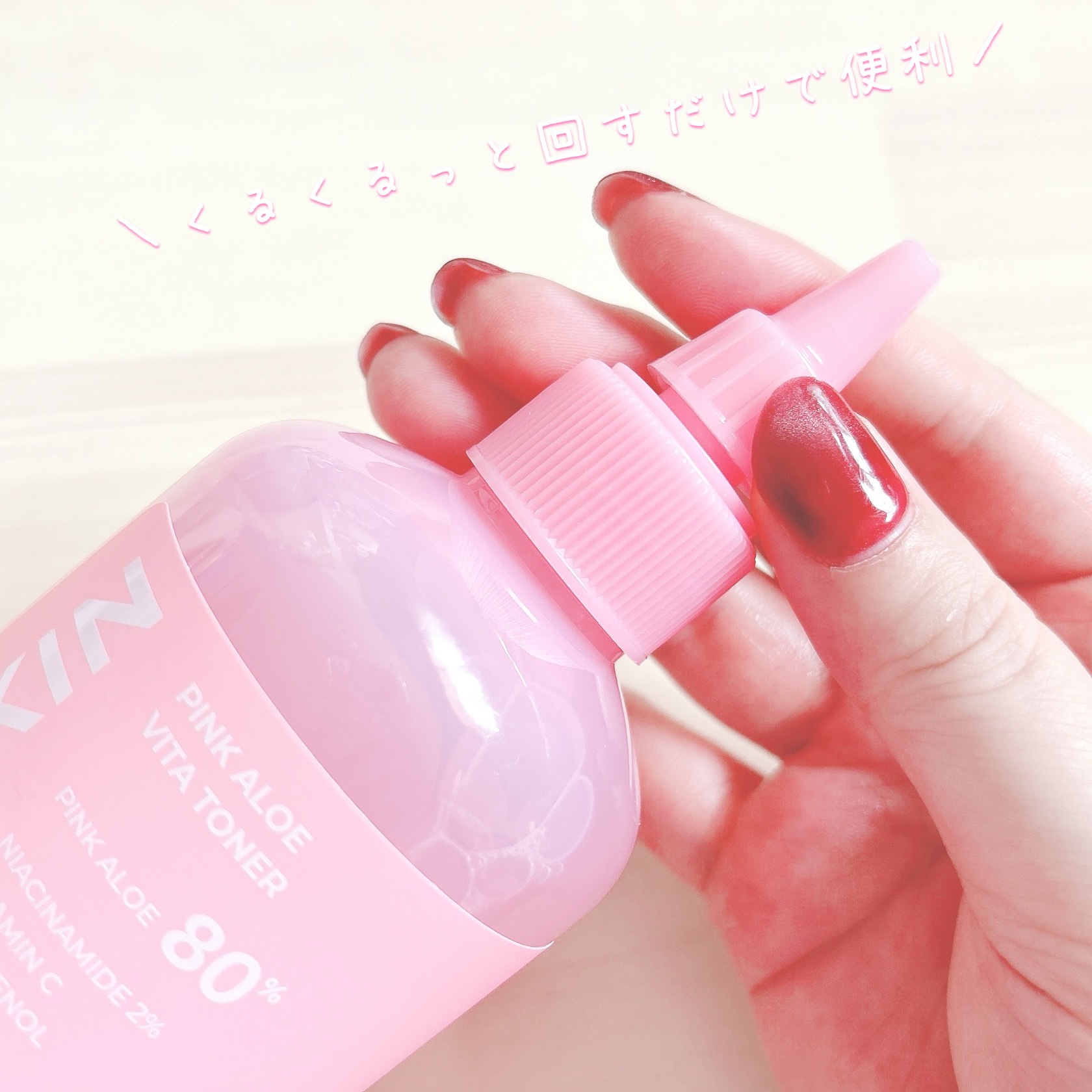 ピンクアロエビタトナーはトラブル肌のために作られたさっぱり系トラブル鎮静トナー。 鎮静効果がより高いピンクアロエが80%配合! 拭き取り化粧水としてもクールダウンパックとしても使えるから肌の水分補給をして急速に鎮静が期待できるよ! ほんのりピンクのトナーで、さらっとしたテクスチャー! 塗るとぐんぐん浸透して乾燥してつっぱったも吸いつくようなもっちり肌に✨