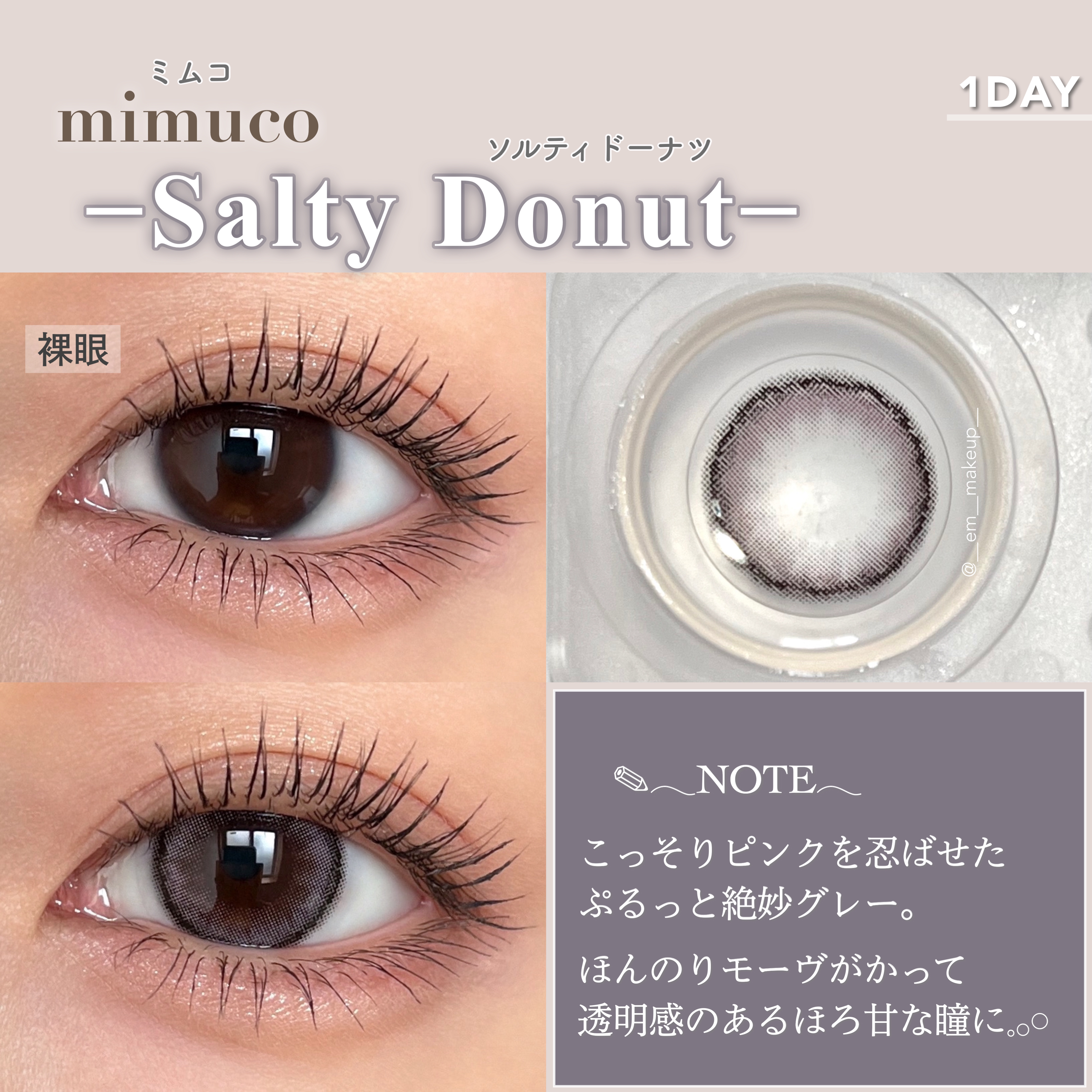 ▼ぷるっと絶妙♡ほろ甘グレー🐰🎀【mimuco/SaltyDonut】mimuco(ミムコ)カラー:ソルティドーナツ全11色/各1,705円(税込)《レンズスペック》使用期間:1dayレンズ直径(DIA):14.2mm着色直径(G.DI...