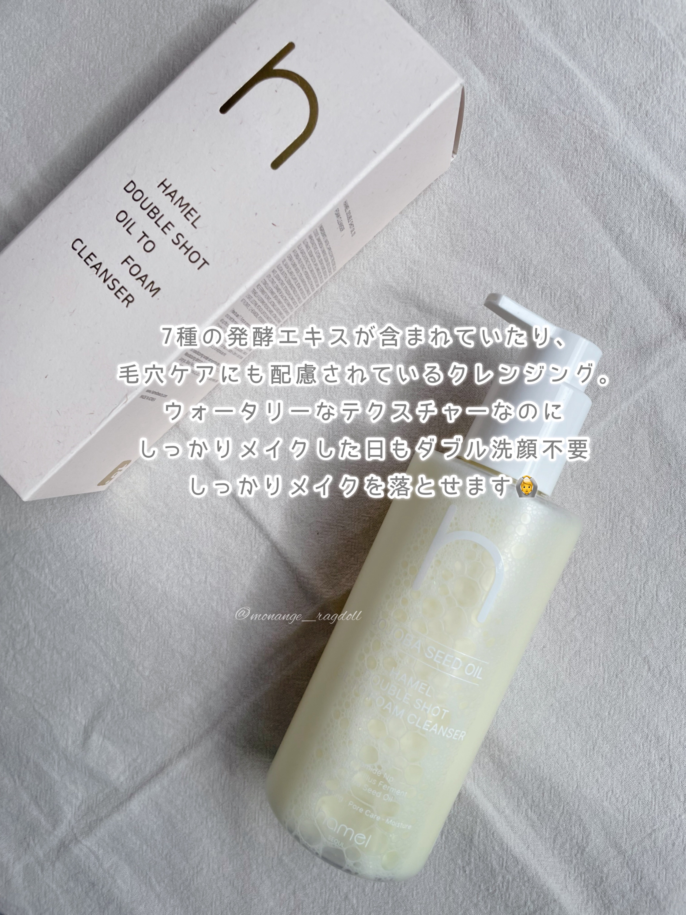 🫧🫧メイクオフ+泡洗顔の1つで2役・ᴗ・♡!hamelDOUBLESHOTOILTOFOAMCLEANSERシャバっとしたテクスチャのクレンザーメイクには軽やかに馴染みますその後は水分を加えくるくるすると泡状に変化時短且つ手軽にお手入れしたい...