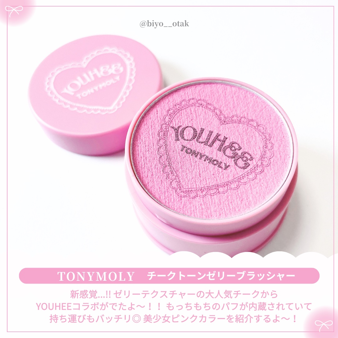 TONYMOLY×YOUHEEコラボをお試しさせていただいたよ🎀韓国発の大人気コスメブランドと、韓国のアパレルブランドYOUHEEとのコラボ品🤍パッケージが可愛すぎて、部屋に置いておきたくなる🥺🤍☑︎YOUHEEコラボショッキングリップティン...