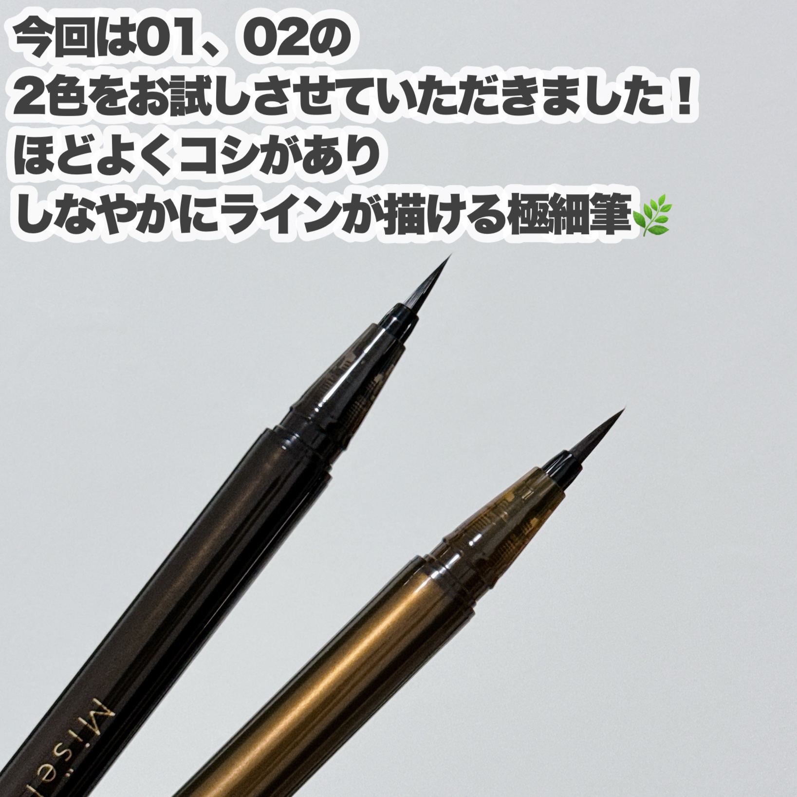 - しっかり目力が出るのに自然な抜け感が叶う、絶妙な「ちょい透け」発色のリキッドアイライナー。水・汗・皮脂・こすれにも負けないストロング処方。速乾タイプ。先端0.1mmの極細筆。 ※3/1一部先行発売