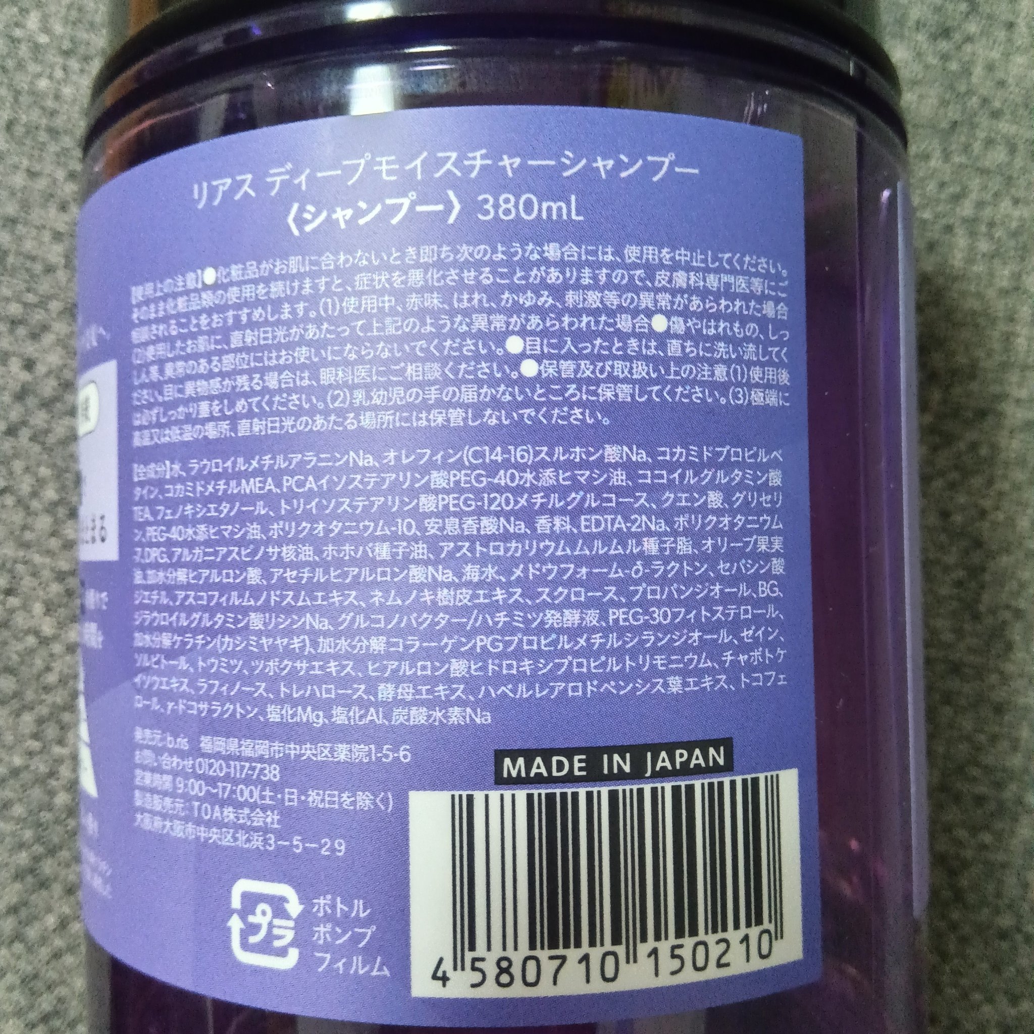 商品詳細情報riasu リアス ディープ モイスチャー シカ シャンプー/トリートメント