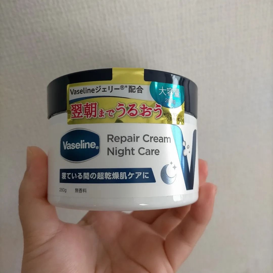 ヴァセリンから、超乾燥肌向けのナイトクリームが登場! レチノールや4種のヒアルロン酸配合。 べたつかずにスーッと肌になじむクリームが、超乾燥肌にも浸透し、うるおいを与えます。 朝まで潤ってすべすべ♪なんか膜がある感じじゃないのが私好みです🥰
