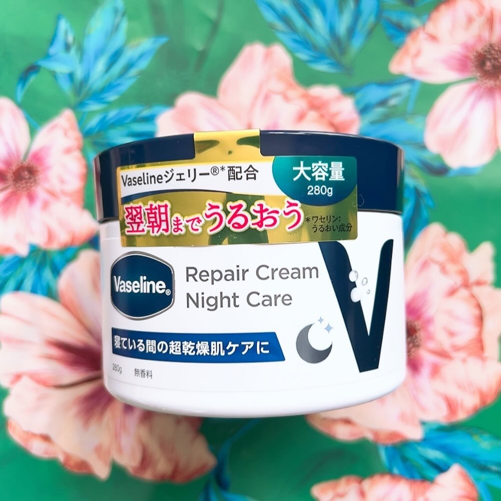 ヴァセリンから、超乾燥肌向けのナイトクリームが登場! レチノールや4種のヒアルロン酸配合。 べたつかずにスーッと肌になじむクリームが、超乾燥肌にも浸透し、うるおいを与えます。 朝まで潤ってすべすべ♪なんか膜がある感じじゃないのが私好みです🥰