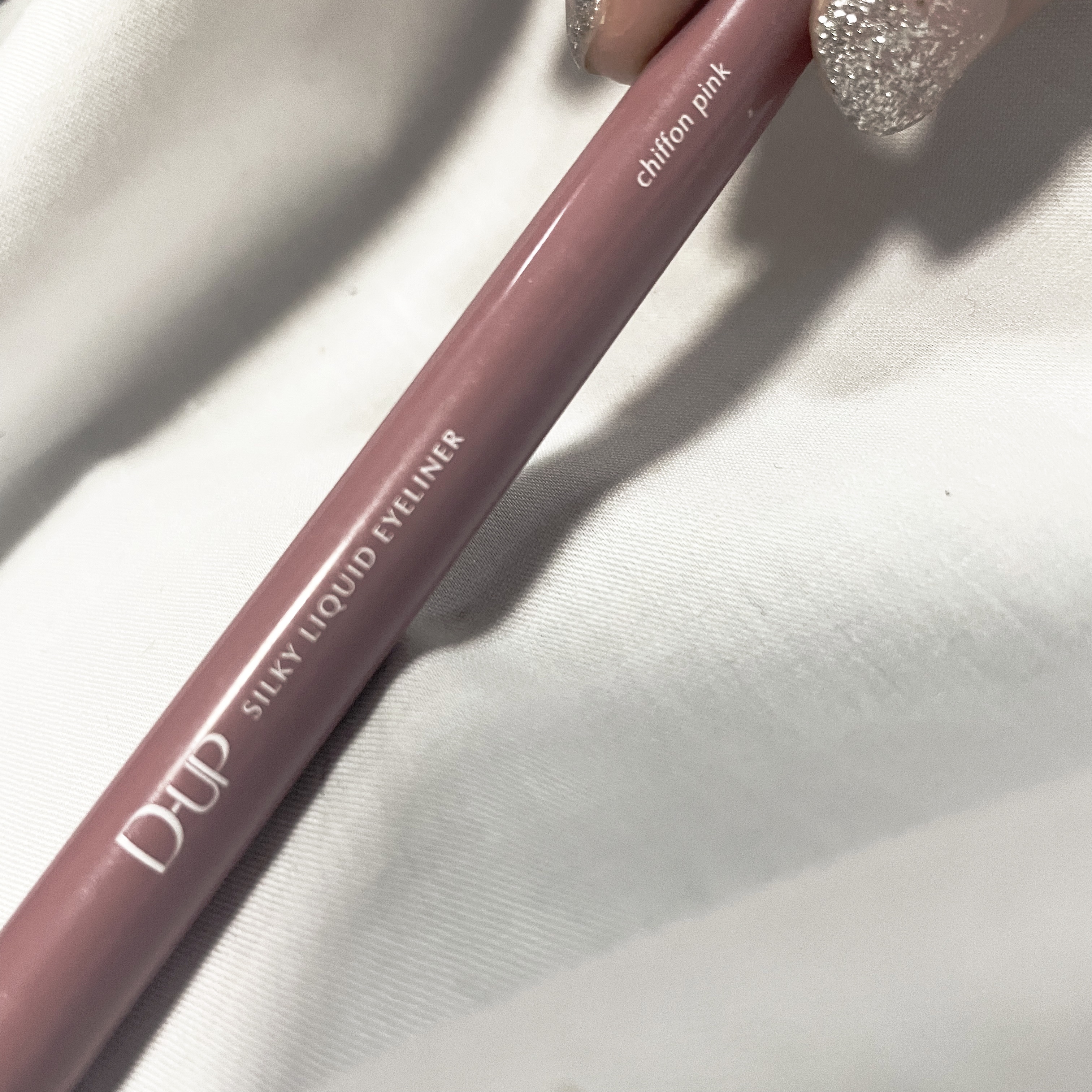 真っ黒のアイライナーはちょっと苦手…… でもパキッとしたカラフルな色味も苦手……という人におすすめしたい シフォンピンクと聞いてピンク?可愛すぎない?と思うかもしれませんが、パキッとした発色ではないので肌なじみもよく使いやすい! ピンク系のアイシャドウする人は特におすすめ 真っ黒だと浮いちゃう……っていう時に使いやすいです