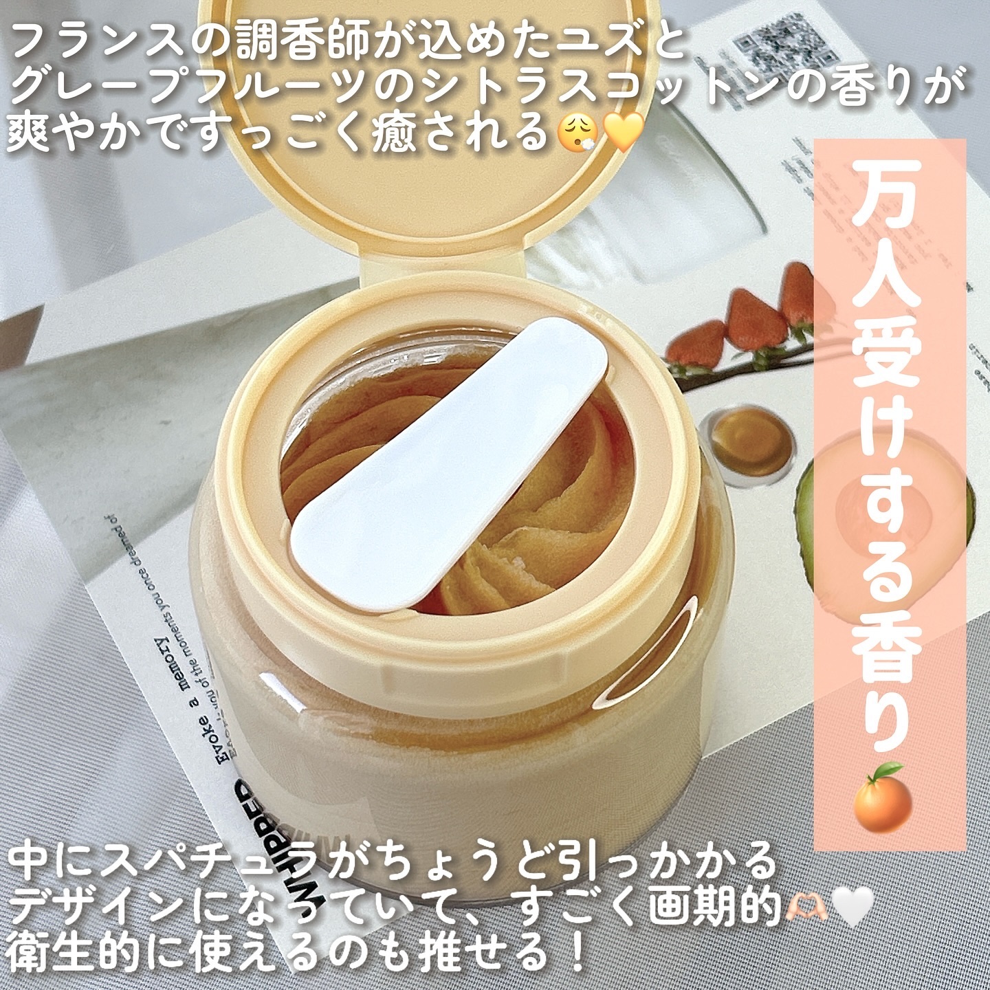 ビタミンCをたっぷり含んだゆずとグレープフルーツとリポソームバクチオールの組み合わせで、クレンジング段階で毛穴の弾力ケアから内側の輝きまで 500回泡立てたホイップクリームのテクスチャーがパック成分を肌の奥深くまで届け、柔らかい凹凸までしっかりクレンジング フランスの調香師が手がけたユズとグレープフルーツのシトラスコットンの香りで癒しのフェイシャルケアタイム