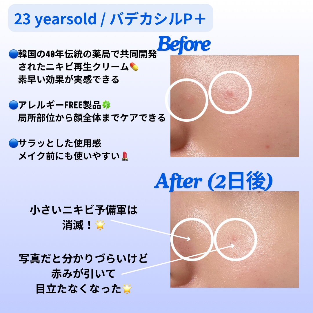#PR#23yearsoldバデカシルP+/バデカシルD+韓国の薬局と共同開発されたニキビケアクリーム💁♀️肌が敏感な時にも使いやすい軽いテクスチャーのジェルクリーム◎クリームの出口が細くなっているので気になる部分にピンポイントでも使えちゃ...