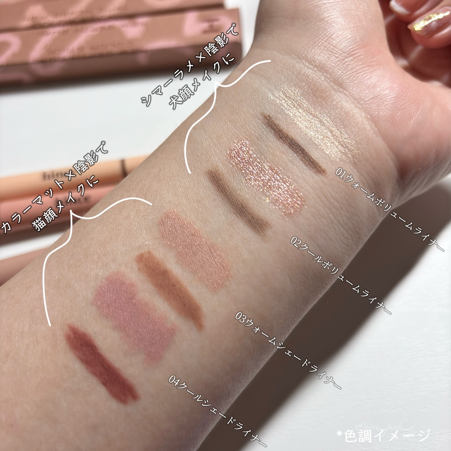 - 【01 ウォームボリュームライナー】 シャドウ:コチニール(カルミン)を使用しています。 【シャドウ】ジメチコン、フェニルトリメチコン、トリメチルシロキシケイ酸、合成ワックス、ステアリルジメチコン、マイクロクリスタリンワックス、テトライソステアリン酸ペンタエリスリチル、合成フルオロフロゴパイト、キャンデリラロウ、ホウケイ酸(Ca/チタン)、ホウケイ酸(Ca/Al)、シリカ、ジステアルジモニウムヘクトライト、フェノキシエタノール、イソステアリン酸ソルビタン、酢酸トコフェロール、炭酸プロピレン、酸化スズ、マイカ、酸化チタン、酸化鉄、カルミン 【ライナー】メチルトリメチコン、トリメチルシロキシケイ酸、ホホバ種子油、合成ワックス、マイクロクリスタリンワックス、ジメチコン、合成フルオロフロゴパイト、酸化鉄、シリカ、オクチルドデカノール、ポリブテン、ジステアルジモニウムヘクトライト、ポリヒドロキシステアリン酸、フェノキシエタノール、酸化チタン 【02 クールボリュームライナー】 シャドウ:コチニール(カルミン)を使用しています。 【シャドウ】ジメチコン、フェニルトリメチコン、トリメチルシロキシケイ酸、ホウケイ酸(Ca/チタン)、ホウケイ酸(Ca/Al)、合成ワックス、ステアリルジメチコン、マイクロクリスタリンワックス、テトライソステアリン酸ペンタエリスリチル、シリカ、キャンデリラロウ、ジステアルジモニウムヘクトライト、フェノキシエタノール、イソステアリン酸ソルビタン、酢酸トコフェロール、炭酸プロピレン、酸化スズ、マイカ、酸化チタン、酸化鉄、カルミン 【ライナー】メチルトリメチコン、トリメチルシロキシケイ酸、ホホバ種子油、合成ワックス、合成フルオロフロゴパイト、マイクロクリスタリンワックス、ジメチコン、シリカ、酸化鉄、オクチルドデカノール、ポリブテン、ジステアルジモニウムヘクトライト、ポリヒドロキシステアリン酸、フェノキシエタノール、酸化チタン 【03 ウォームシェードライナー】 【シャドウ】メチルトリメチコン、フェニルトリメチコン、トリメチルシロキシケイ酸、合成ワックス、ステアリルジメチコン、オクチルドデカノール、酸化鉄、キャンデリラロウ、ポリプロピルシルセスキオキサン、ジステアルジモニウムヘクトライト、合成フルオロフロゴパイト、シリカ、(エチレン/プロピレン)コポリマー、フェノキシエタノール、水酸化Al、セスキオレイン酸ソルビタン、トリエトキシカプリリルシラン、酢酸トコフェロール、トリ(カプリル酸/カプリン酸)グリセリル、メチコン、マイカ、酸化チタン 【ライナー】メチルトリメチコン、トリメチルシロキシケイ酸、ホホバ種子油、合成ワックス、マイクロクリスタリンワックス、ジメチコン、合成フルオロフロゴパイト、酸化鉄、シリカ、オクチルドデカノール、ポリブテン、ジステアルジモニウムヘクトライト、ポリヒドロキシステアリン酸、フェノキシエタノール、酸化チタン 【04 クールシェイドライナー】 ライナー:コチニール(カルミン)を使用しています。 【シャドウ】メチルトリメチコン、フェニルトリメチコン、トリメチルシロキシケイ酸、合成ワックス、ステアリルジメチコン、オクチルドデカノール、酸化鉄、キャンデリラロウ、ポリプロピルシルセスキオキサン、ジステアルジモニウムヘクトライト、シリカ、(エチレン/プロピレン)コポリマー、フェノキシエタノール、水酸化Al、セスキオレイン酸ソルビタン、トリエトキシカプリリルシラン、酢酸トコフェロール、トリ(カプリル酸/カプリン酸)グリセリル、メチコン、マイカ、酸化チタン 【ライナー】メチルトリメチコン、トリメチルシロキシケイ酸、ホホバ種子油、合成ワックス、マイクロクリスタリンワックス、合成フルオロフロゴパイト、ジメチコン、酸化鉄、シリカ、オクチルドデカノール、ポリブテン、ジステアルジモニウムヘクトライト、ポリヒドロキシステアリン酸、フェノキシエタノール、酸化チタン、カルミン