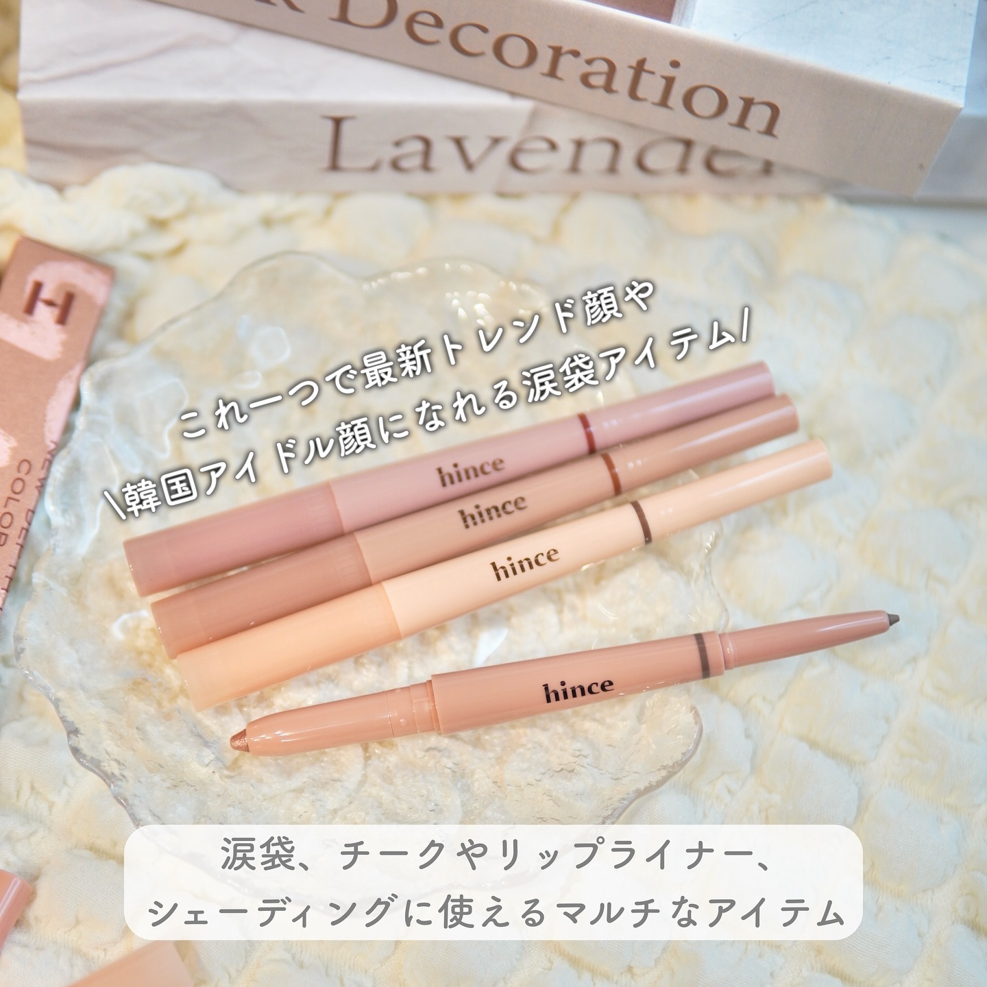 - 「ニューデップスアイシャドウ」の人気カラーをそのままスティックに適用し、涙袋はもちろん、チークやリップライナー、シェーディングとしてもマルチにご使用いただけます。 ✓ 用途別に最適化されたサイズでメイクアップの完成度を高める 左右が異なるサイズで構成されており、まぶたやチークなど広い部位はもちろん、目尻やリップライナーなどの細かい部位にも使用可能なマルチユースカラースティック ✓ ヒンスの人気シャドウがスティックに!粉飛びなく素早く簡単に感度の高いメイクを実現 ・「ニューデップスアイシャドウ」の人気カラーをスティックにして、いつでもどこでも素早く簡単に感度の高いメイクが可能 ・肌に浮き上がることなく自然に馴染む、多彩なパーソナルカラーを考慮して構成されたトーン別シェード ✓ なめらかなクリーミーで⻑時間密着するフィクシングフォーミュラ ・乾燥や角質で浮き上がったり、ヨレたりすることないクリーミーテクスチャー ・つっぱることなく、目元や口元にも使用できるスムーズなつけ心地 ・ブレンディングした後はしっかり密着し、⻑時間キープするフィクシングフォーミュラ 2024年10月14日(月)にQoo10、楽天のヒンス公式ショップにて先行発売。