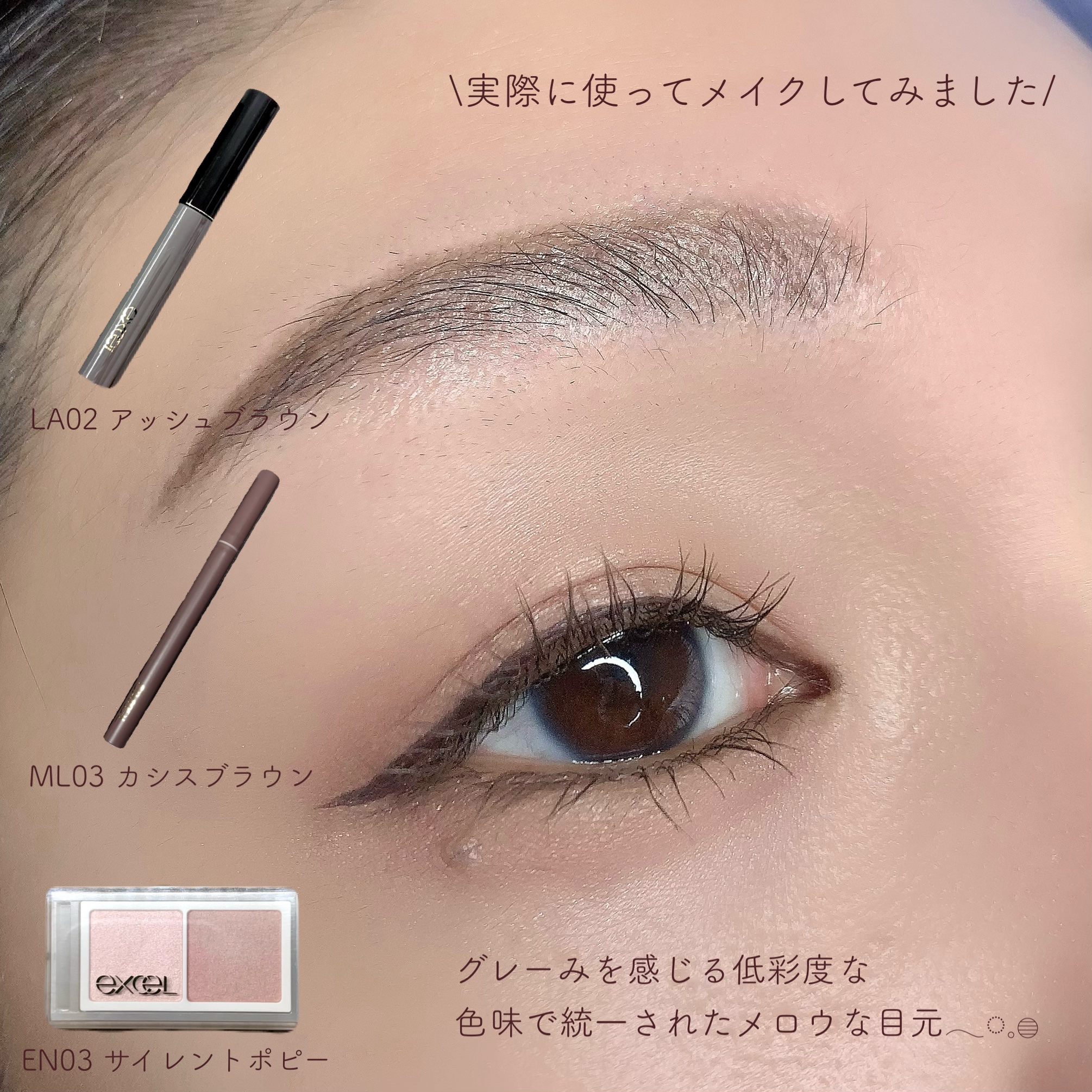 抜け感のある目元をつくる秋の新作アイテムがエクセルから登場🍂 スフレみたいなふわっとしたさわり心地。水面のような輝きが美しいっ🪞 細くてコシのある筆がめっちゃ描きやすかった❕まろやかで雰囲気のあるカラーがかわいい…。