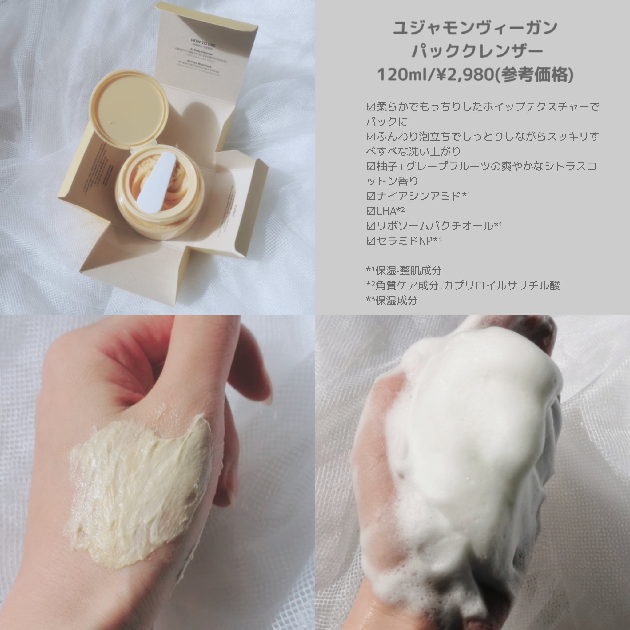 シトラス好きな方に激推ししたいユジャモンヴィーガンパッククレンザー🍊 ユジャモンはホイップドハウス聖水のワンデークラスでのみお試しいただけた特別なもの。今回遂に商品化され、10月14日よりQoo10にて発売! このねっとり濃厚なホイップクリームテクスチャーが特徴的🍨🩷 頬や小鼻の凹凸のすみずみにまでしっかり密着し、心地よい香りとともにクレンジングできます。