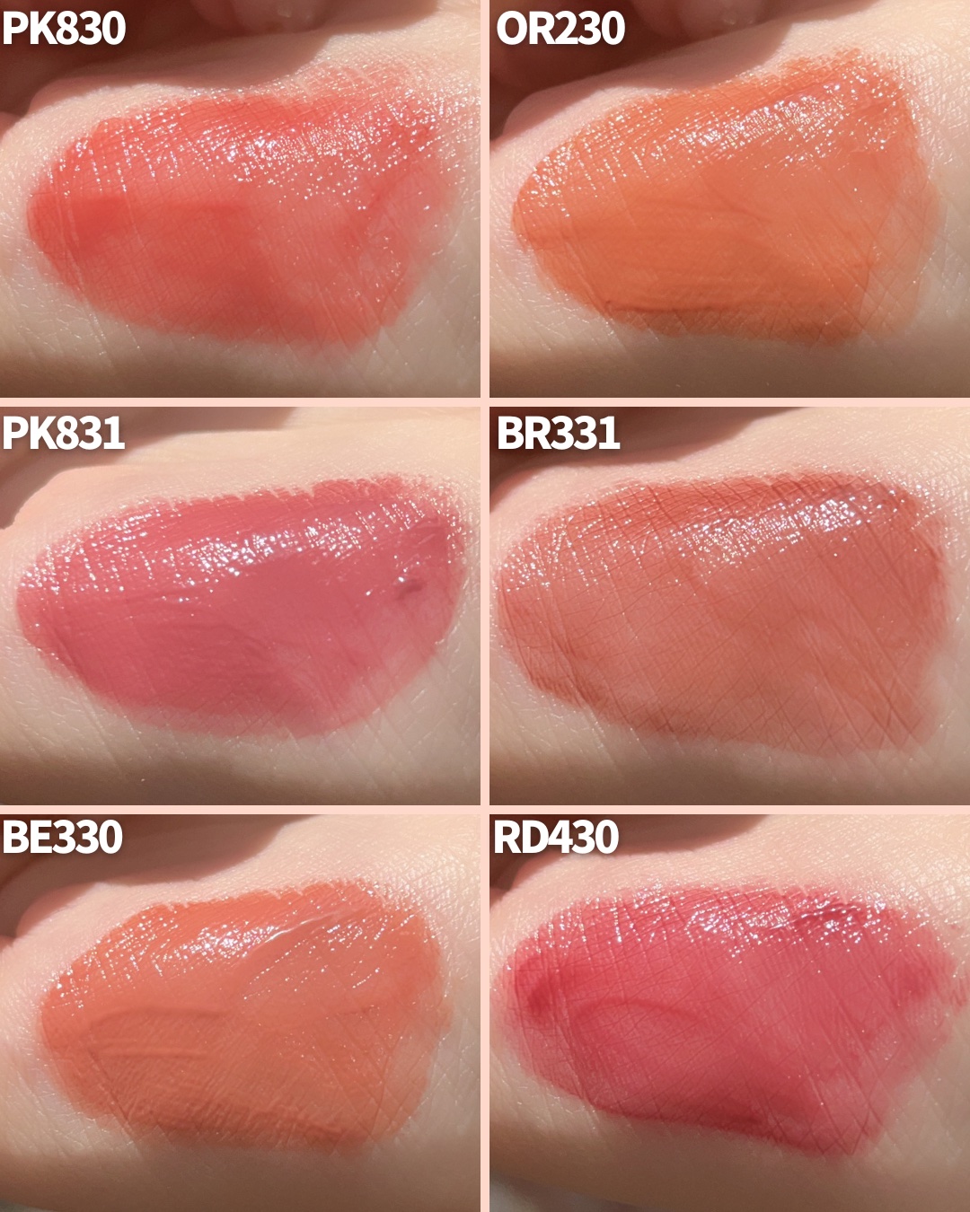 ネンマクフェイクリキッドの特徴 ✔︎ひとぬりでムラなく塗れる なめらかな塗り心地 ✔︎膜を張ったようなつるんとした光沢感のような艶やかな仕上がり ✔︎何より飲食しても本当〜に落ちにくい!! BE330したたるアプリコット 肌馴染みよいアプリコットベージュ🍑 血色感を与えてくれるベージュで、かなり使いやすい…!! PK830フラミンゴの純情 かわいらしい王道なピンクレッド🦩 公式写真より赤っぽい発色で青みにも黄みにも寄らないニュートラルなカラー◎