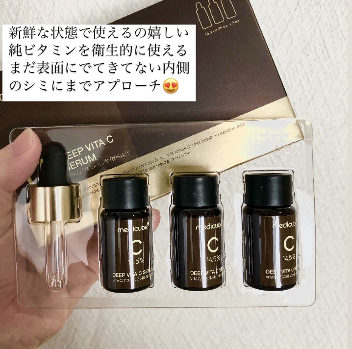 美白とシワ改善におすすめのビタミンC美容液です🍋 ピュアビタミンCの吸収度を高め、肌の刺激を減らすための設計をしています✨ 3つの個包装になっていて、ビタミンが劣化することなく新鮮な状態で使えるし容器も紫外線から守って良い状態をキープできるそうです☀️ 7日間使うと肌がトーンアップすることが、臨床的にも確認されているそうです🌟
