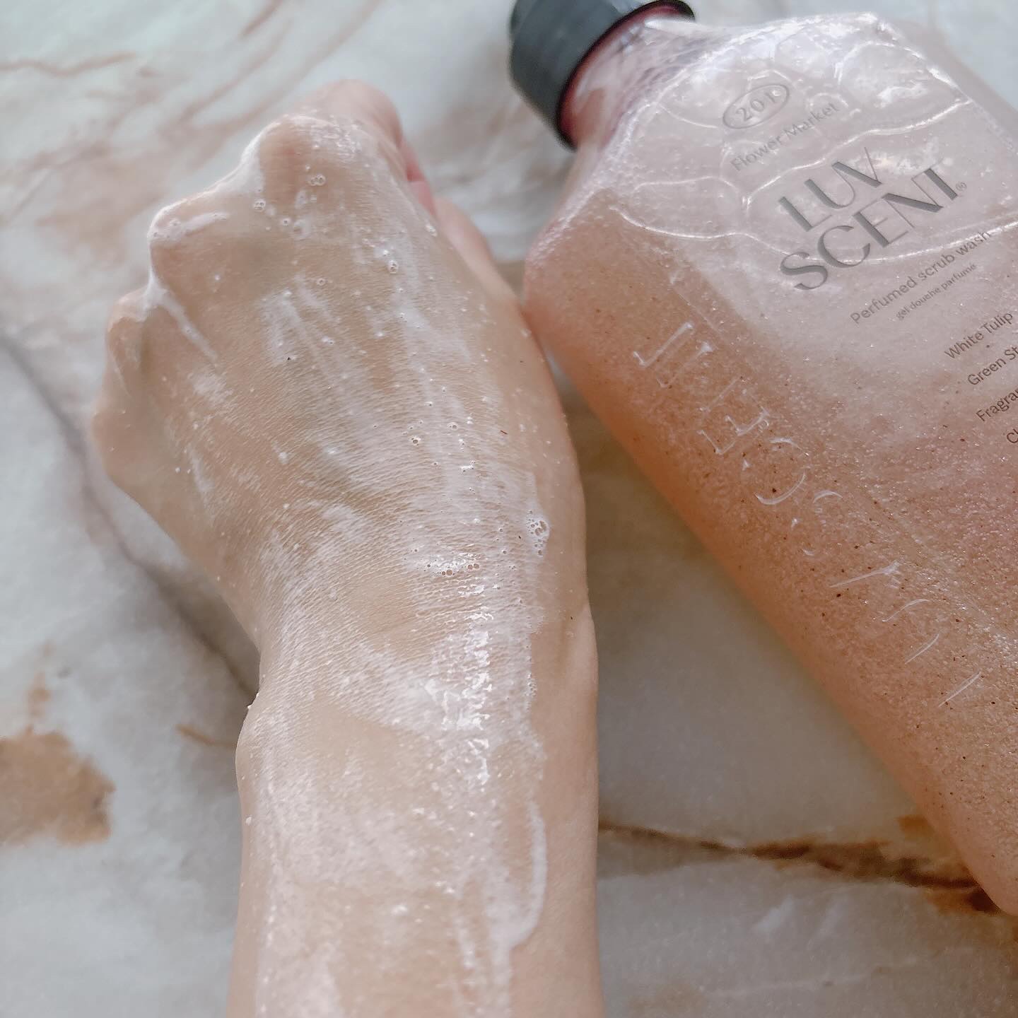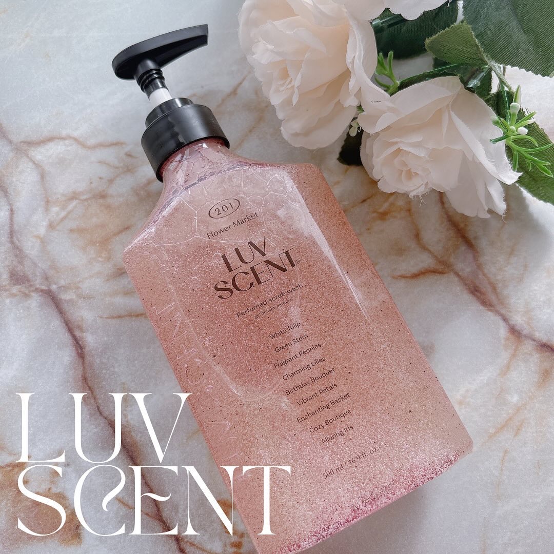 LUVSCENT(ラブセント)は世界的調香師が香りを手掛けているので豊かな香りが楽しめるボディケアブランドだよ☝🏼 泡立てるともこもこ泡で生き生きとした幸せな香り🌷 スクラブ入りだけど刺激はなく、デイリーに使えるˎˊ˗ まるでお花屋さんの真ん中に居るような生花の香りがバスルームいっぱいに広がって毎日のバスタイムが至福の時間になってるよ🌷🌸🌼