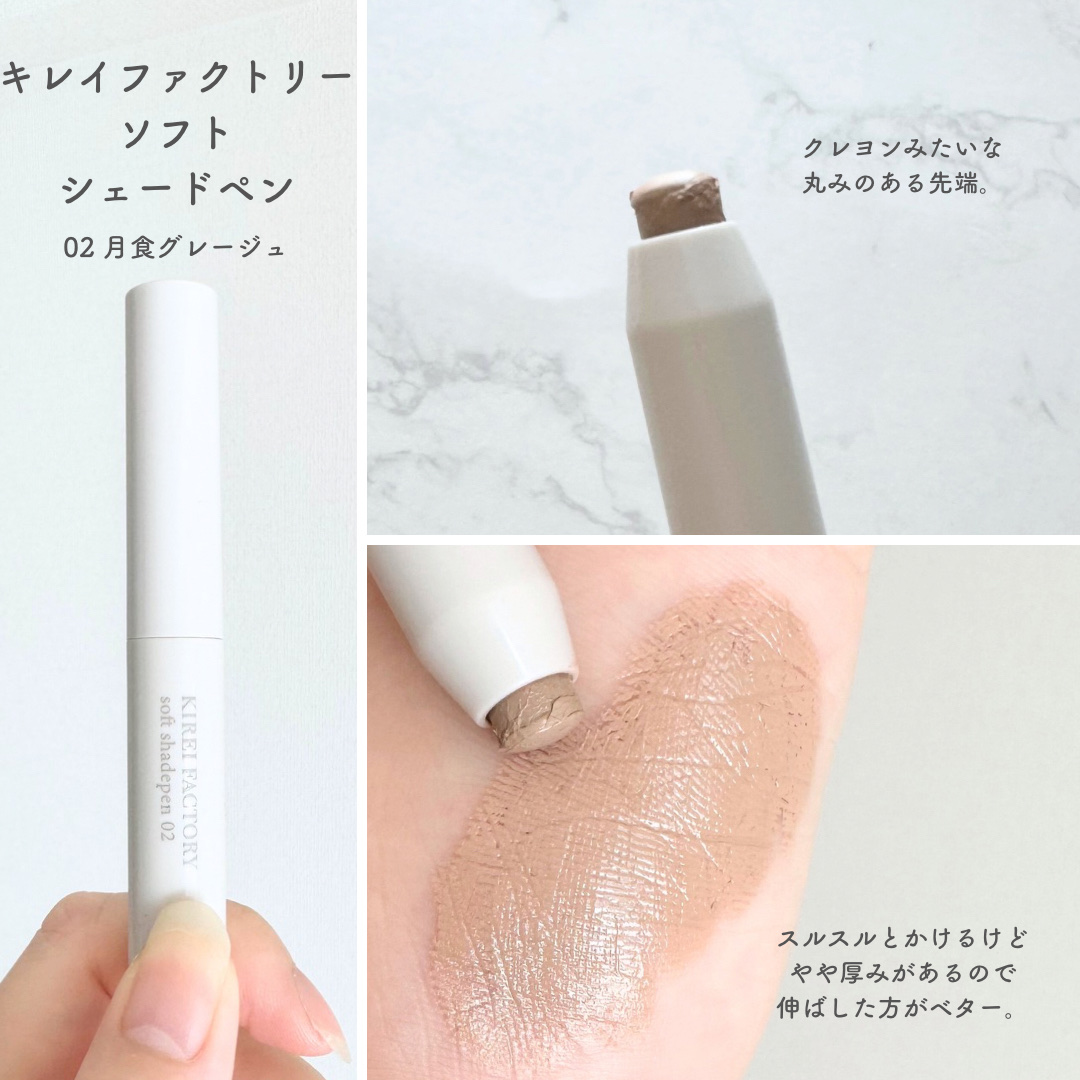 【使った商品】KIREIFACTORY ソフトシェードペン 02月食グレージュ【商品の特徴】こっそり仕込むペンタイプの シェーディング 涙袋の影、鼻筋、輪郭、人中に 線を引いてぼかすだけで立体...