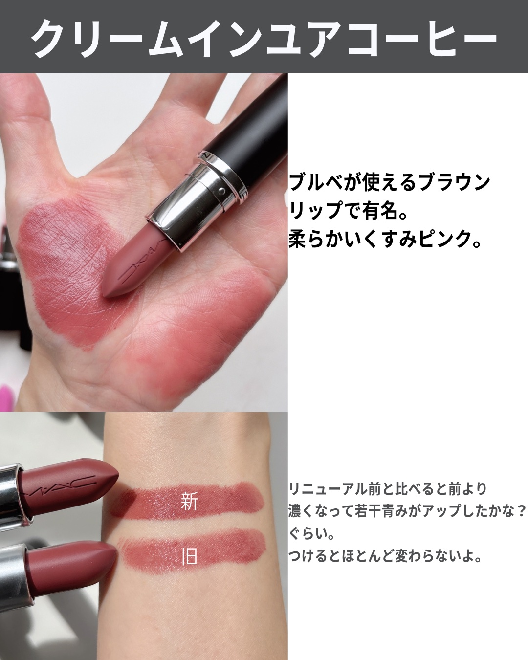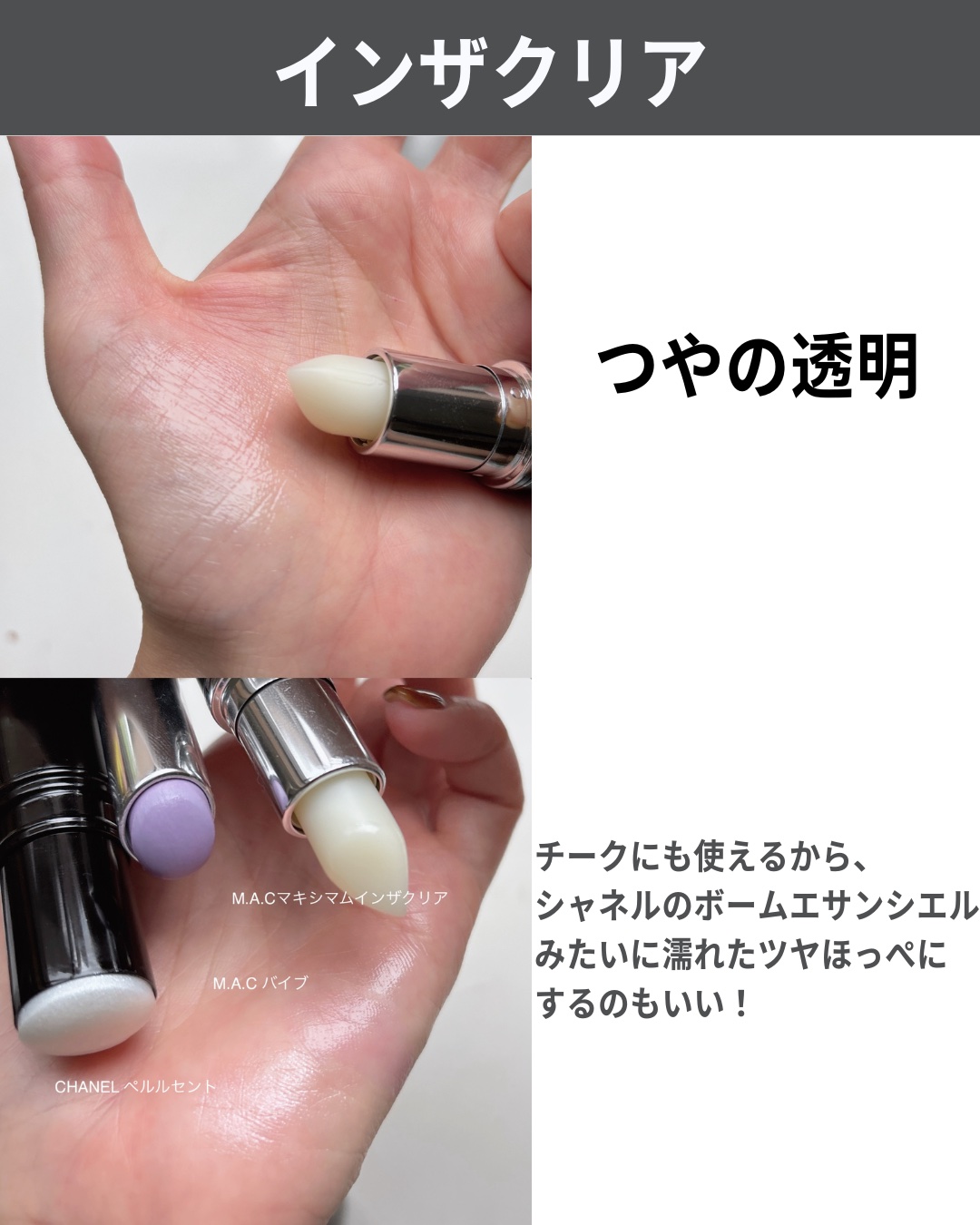 M ・ A ・ C創立40周年の節目にサテンリップも40年ぶりにリニューアル! しかもツヤ感としっとり感が増して、チークにも使用OKになって、毎日使えるリップに♡ インザクリアは乾燥対策・ツヤ出し要員として優秀だし男性へのギフトとしても良さそうだよ🎁✨