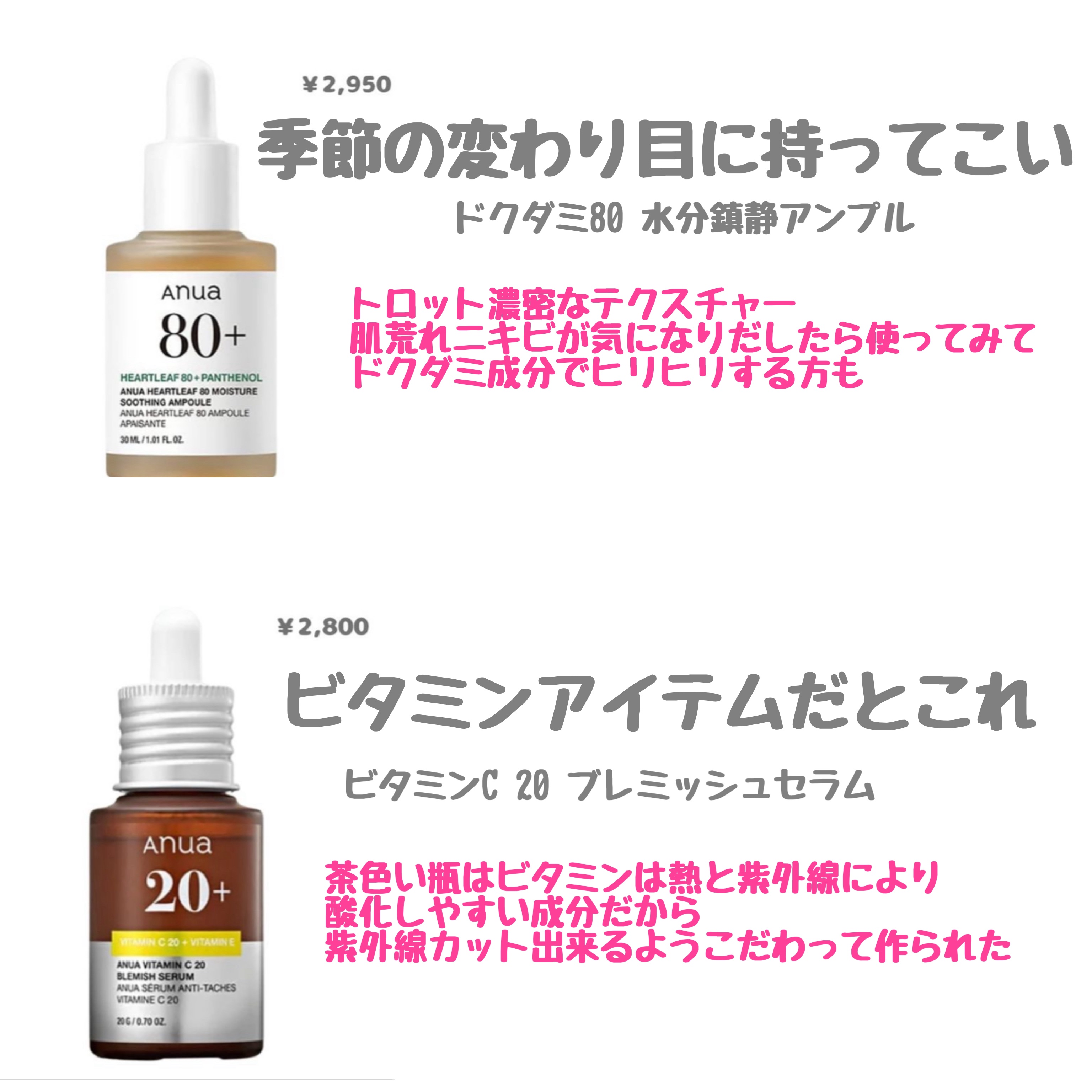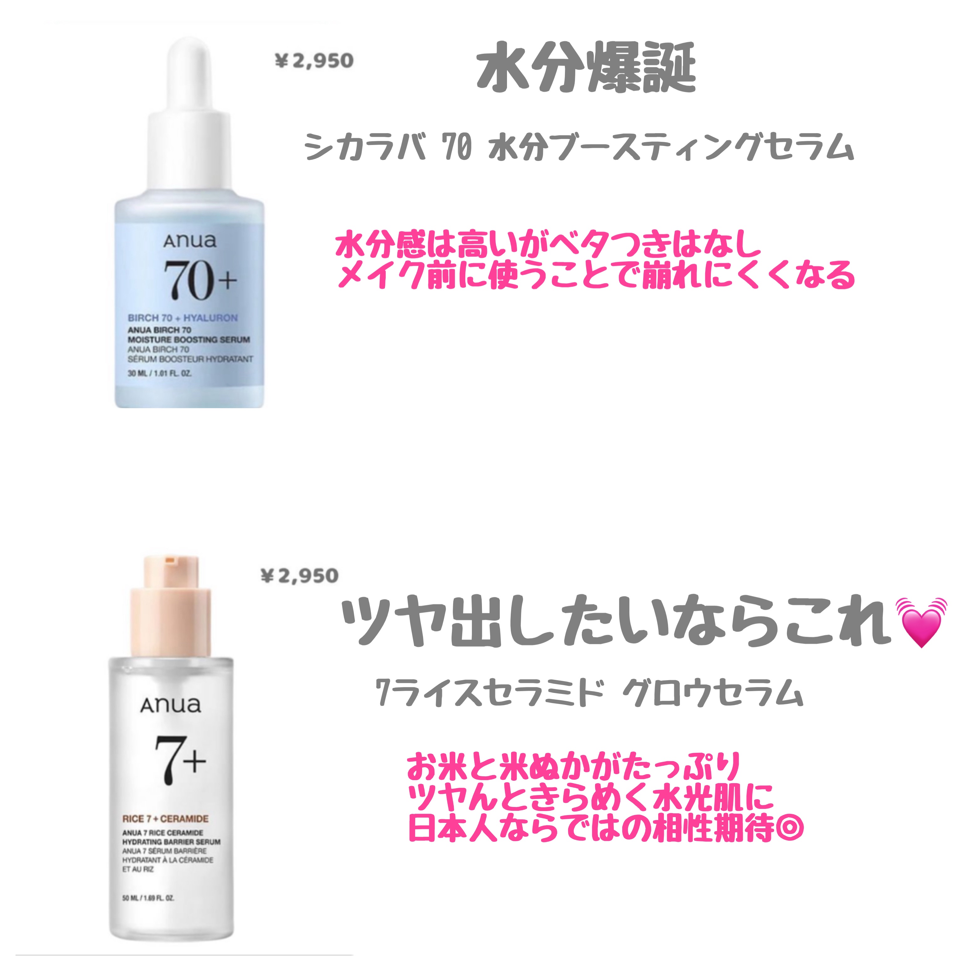 🦋夏の肌トラブル、何でケアする?🌞肌悩み別・Anua美容液まとめ💧気温も湿度も上がる夏は、肌が不安定になりがち🥵そんなときこそ、“効かせる美容液”で集中ケアが鍵!✔テカリ・毛穴・ゆらぎ・紫外線…それぞれに合う1本を紹介✔どれもベタつかない!夏...